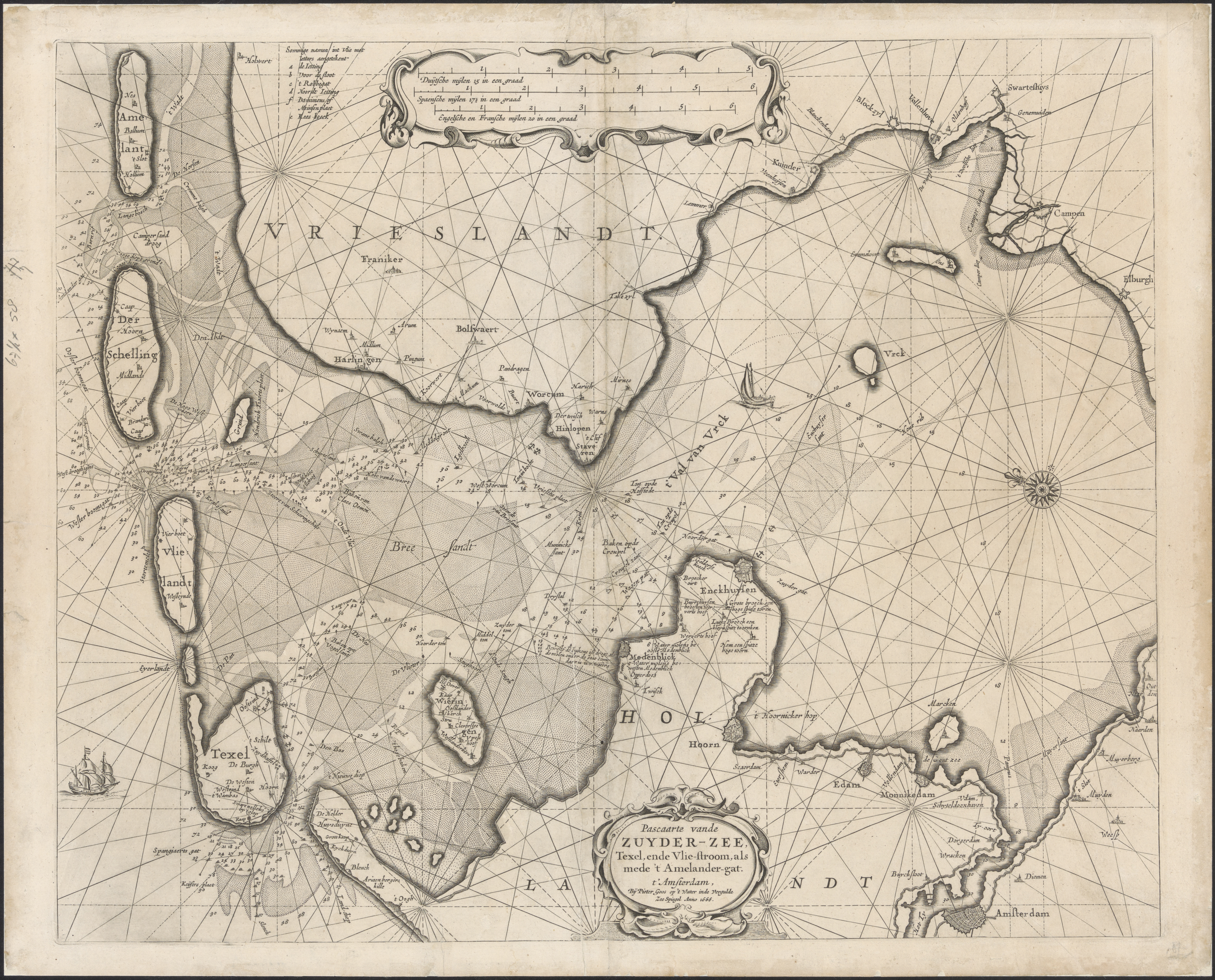 Pascaarte vande Zuyder-zee, Texel, ende Vlie-stroom,...