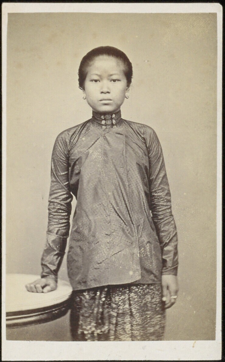 Studioportret van een Javaans bruidspaar, op de rug ...