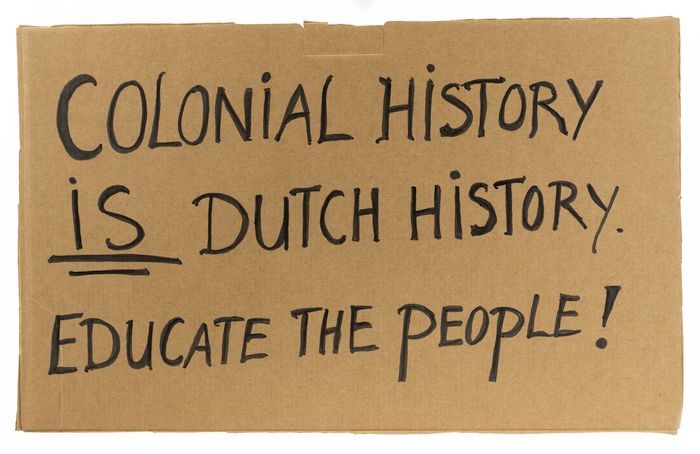 Protestbord of actiebord Black Lives Matter: "COLONI...