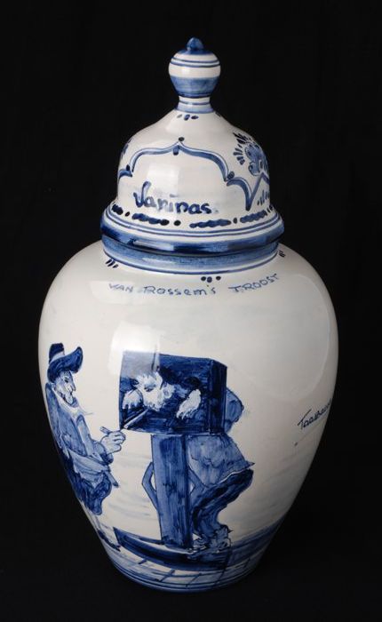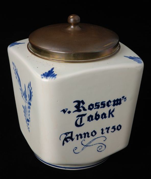 Delfts blauwe voorraadpot voor tabak van Van Rossem,...