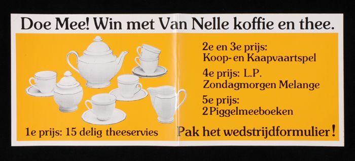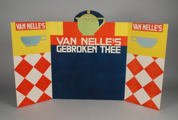 Uitklapbaar reclamebord Van Nelle's "GEBROKEN THEE"