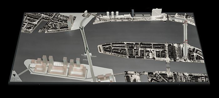 Maquette van een ontwerpvoorstel van de brug naar de...