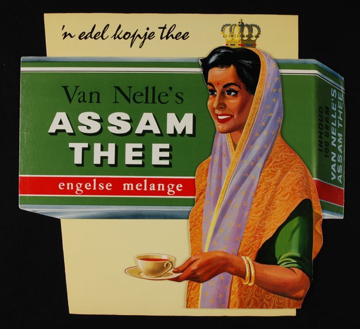 Reclamebord Van Nelle's "ASSAM THEE" met Indiase vrouw