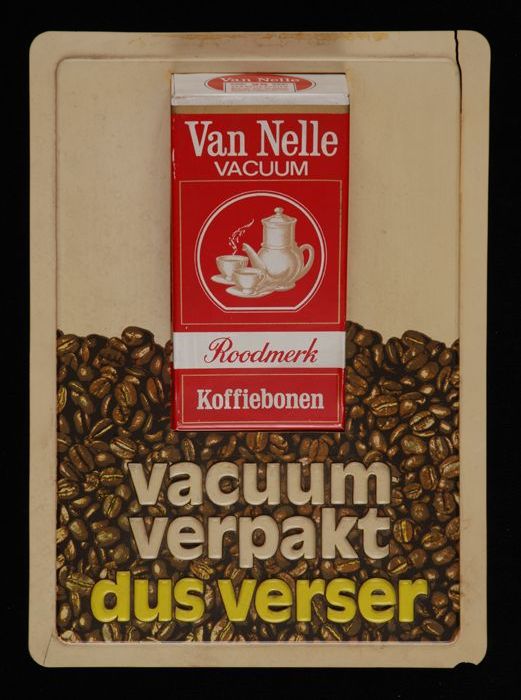 Uitklapbaar reclamebord Van Nelle's "PAKJES KOFFIE"