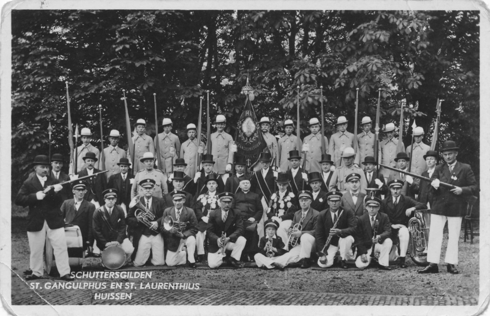 Groepsfoto van de beide Gilden 1936 ansichtkaart