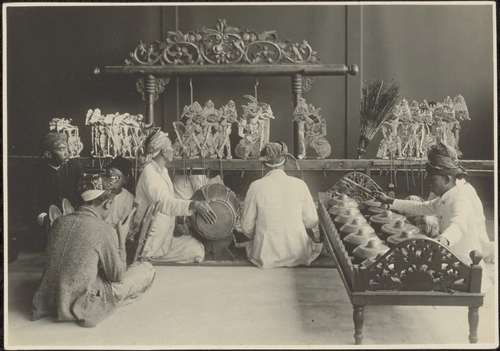 Een wajang kulit voorstelling met begeleiding van ee...
