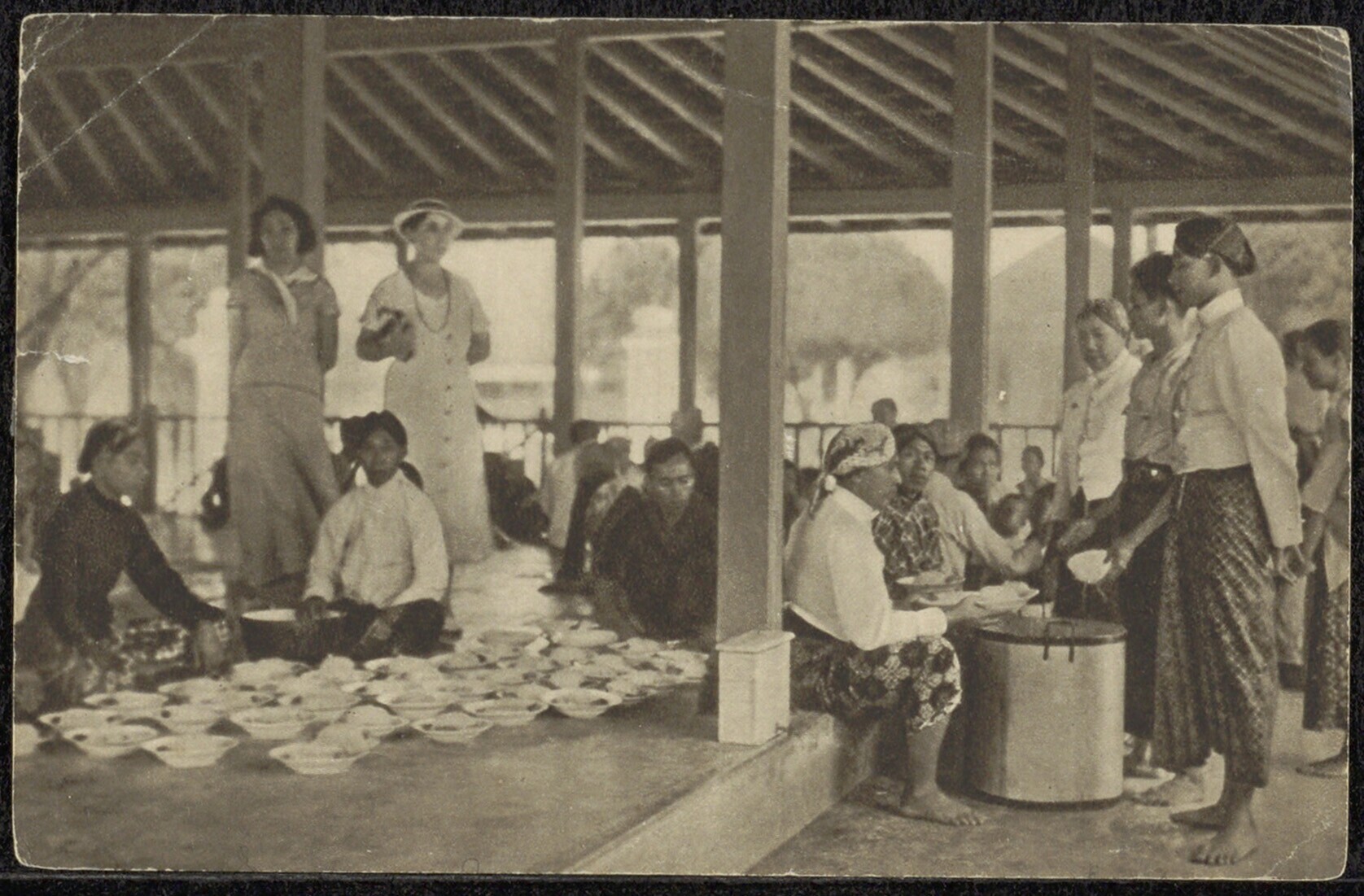 Javaanse vrouwen en kinderen bij badplaats