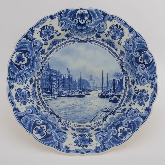 Delfts blauw gedenkbord, met Scheepmakershaven, 40-j...
