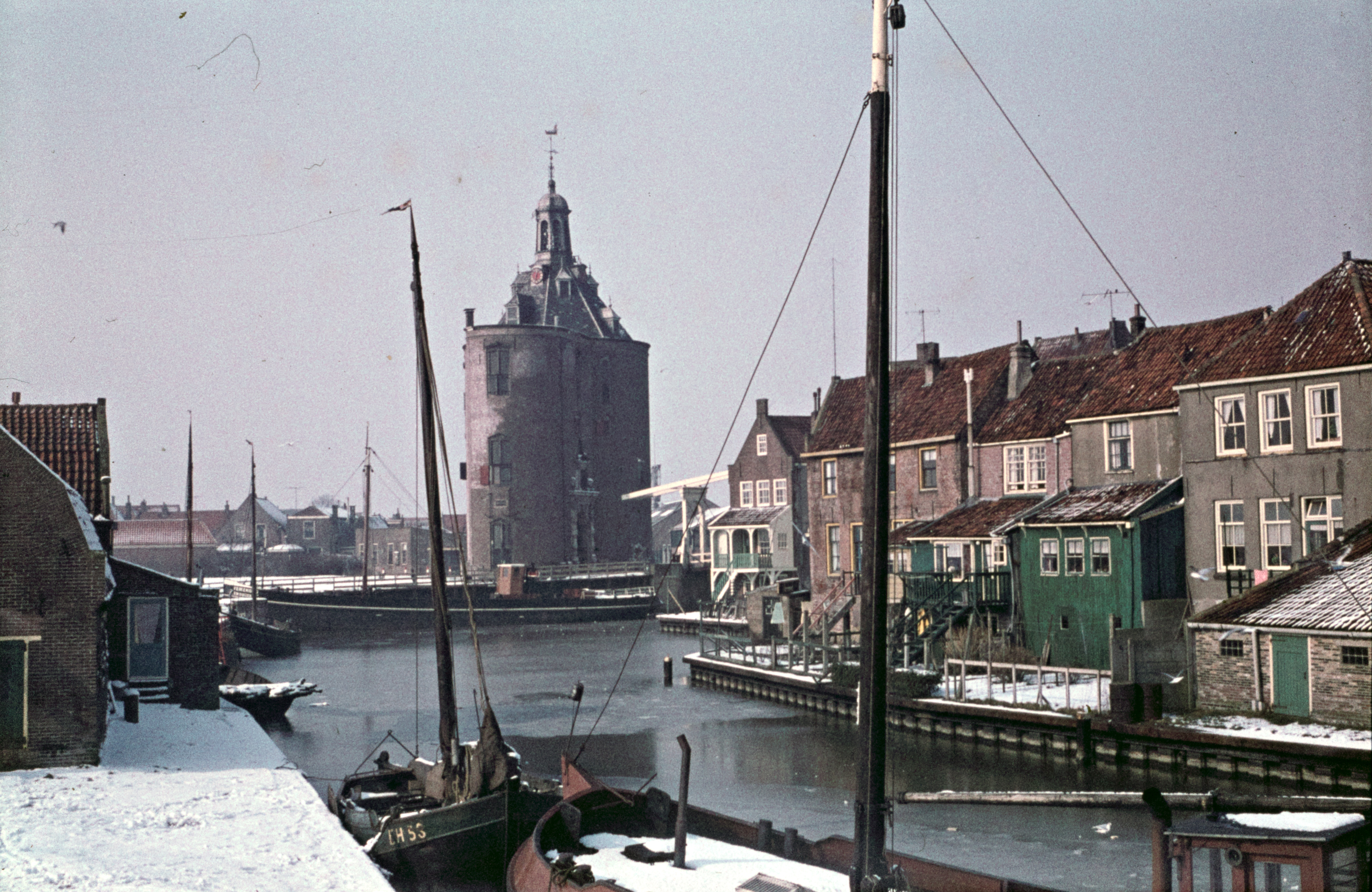 Kolk met Drommedaris en achterzijde Bocht in de sneeuw.