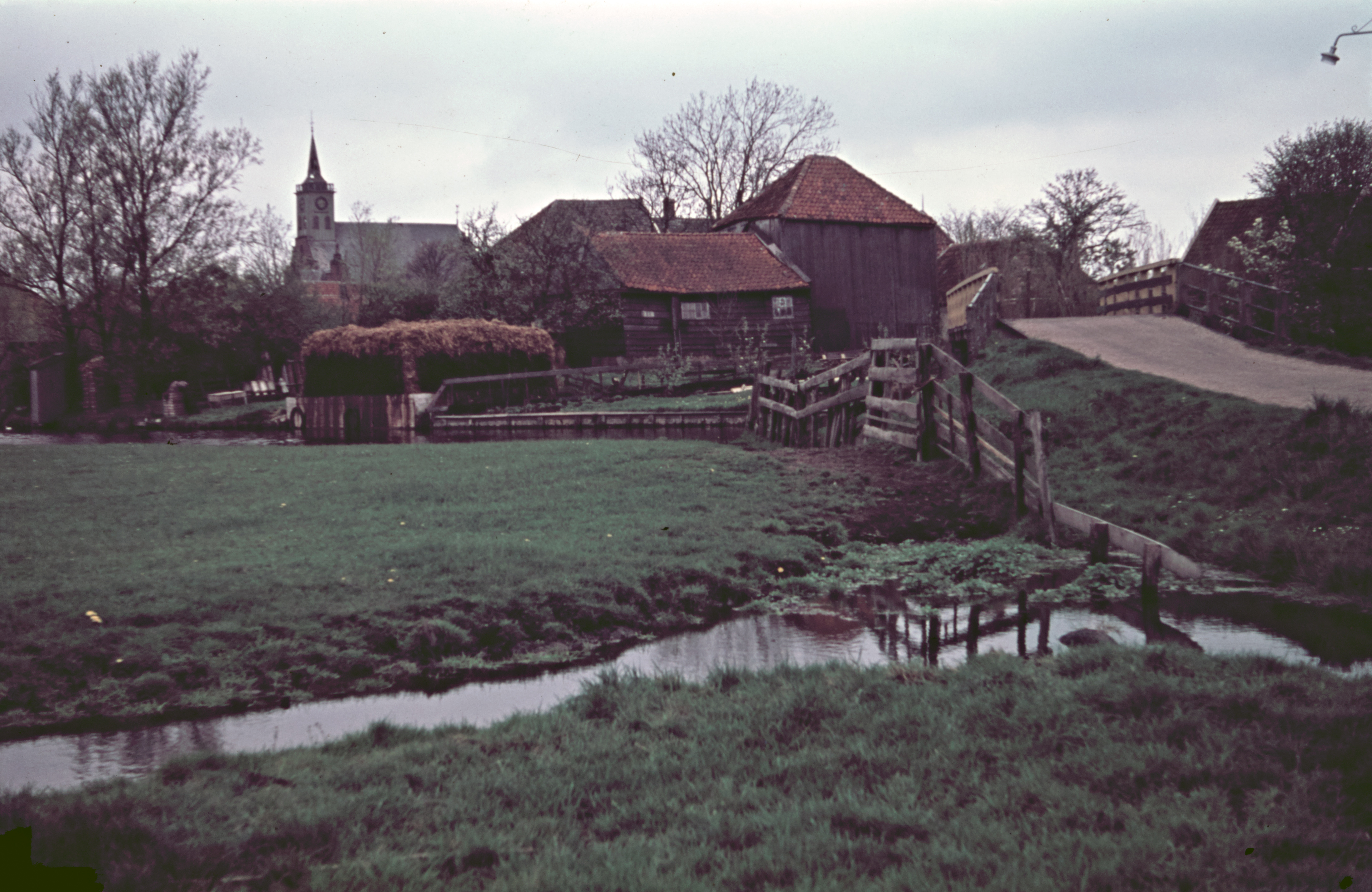 Landschap met hooibergen en de kerk van Genemuiden i...