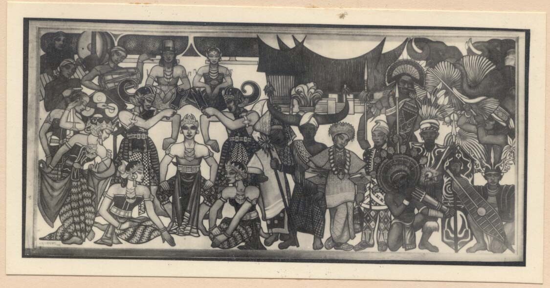 Wandschildering 'Un voyage d'un Roi à Java au 14e Si...