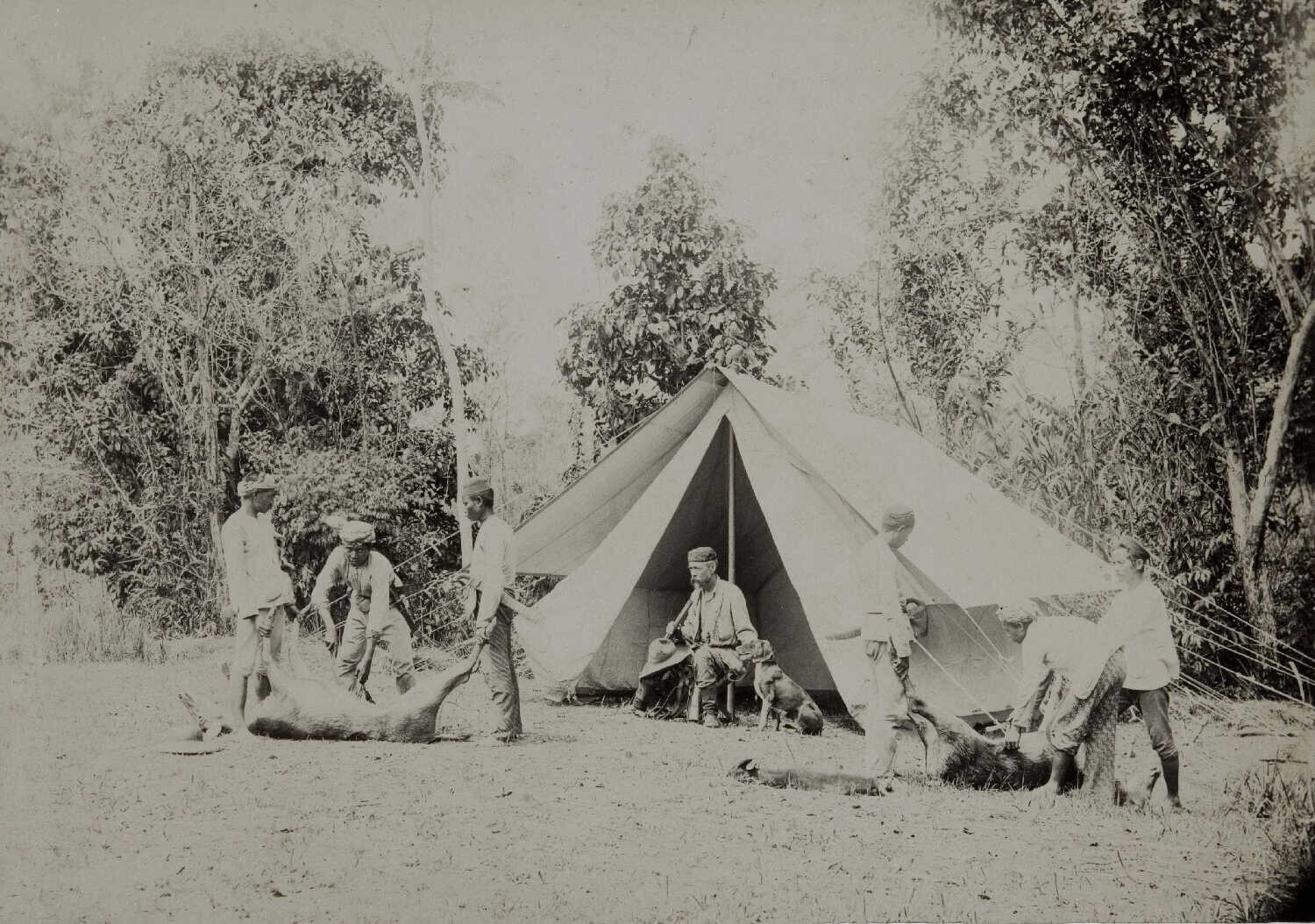 De familie C.H.A. Westhoff met personeel voor hun wo...