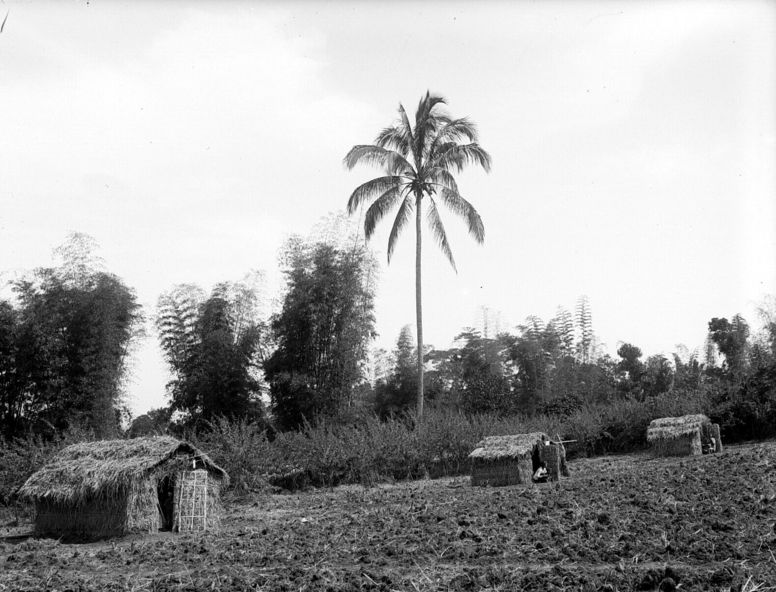 Hutten op een veld