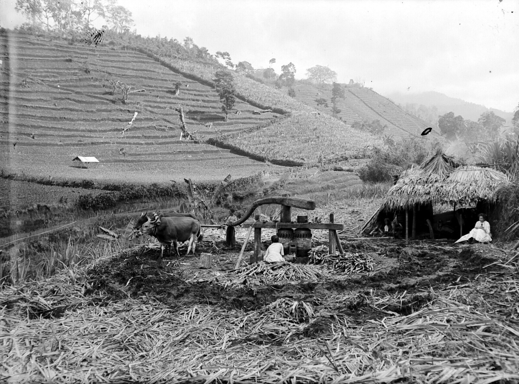 Een suikerrietmolen bij Poedjon