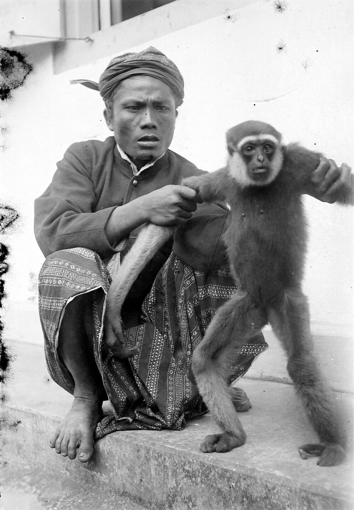Portret van een man met aap op Java