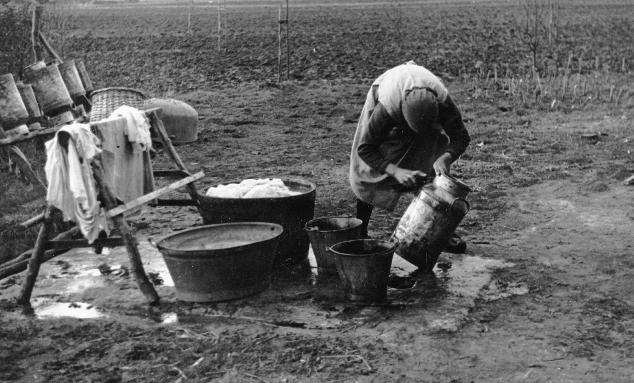 Wassen van melkbussen op een spoelplaats, Asten, 193...