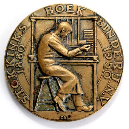 Bronzen herdenkings legpenning, Stokkink’s Boek Bind...