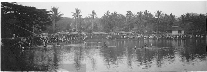 Viswedstrijd in een meer, Java, Indonesië (1930)