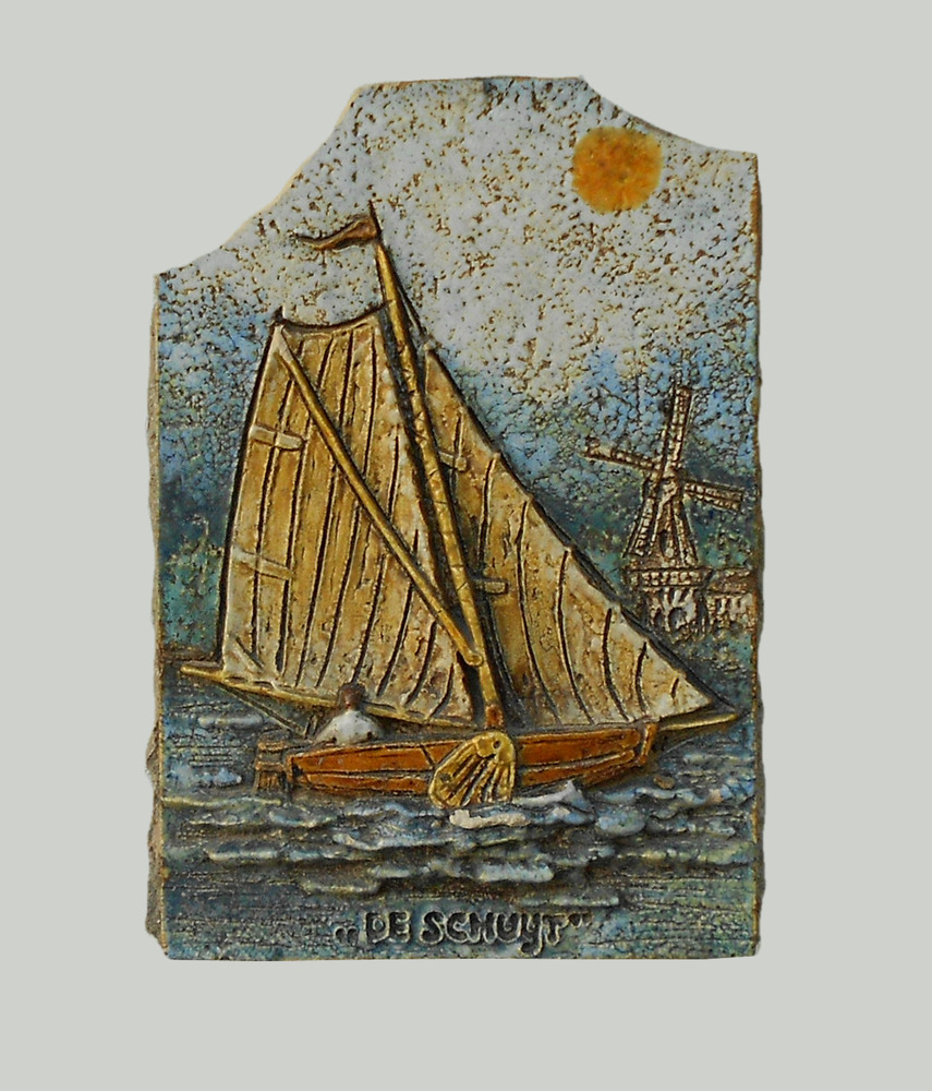 Gevelsteen uit Nijkerk, met daarop een zeilboot en h...