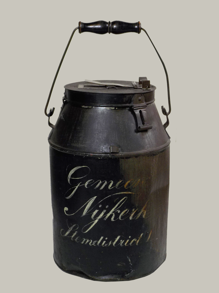 Stembus met het opschrift ‘Gemeente Nijkerk / Stemdi...