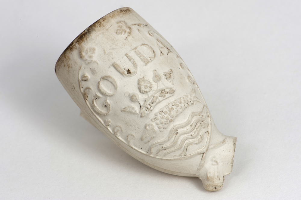 Pijpenkop met ovale ketel met daarop een afbeelding ...