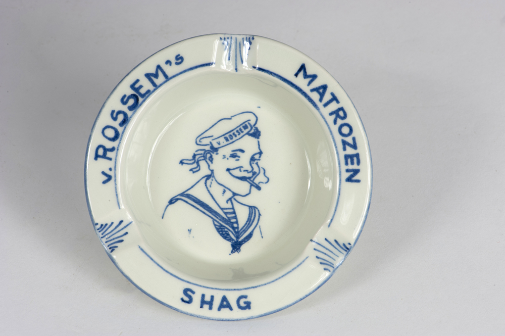 Asbak met daarop het opschrift 'v. Rossem's Matrozen...
