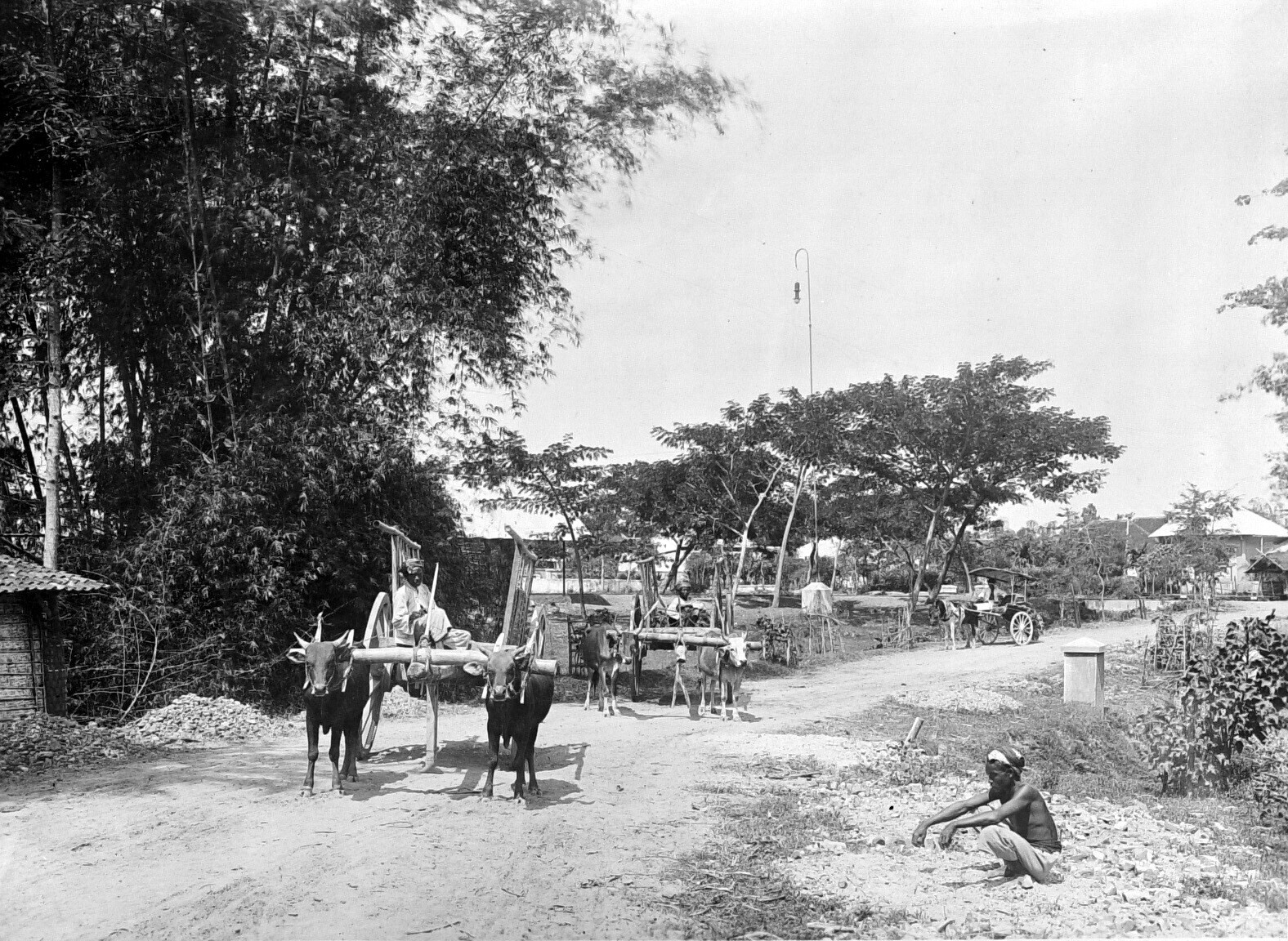 Sapi(=rund)-kar met riettransport aan de weegbrug, D...