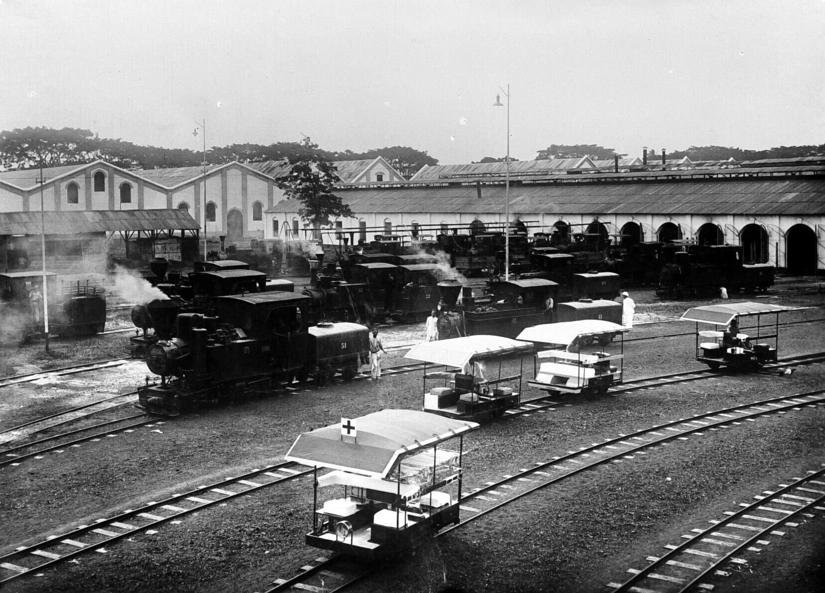 Locomotiefremise van de HVA suikerfabriek Djatiroto