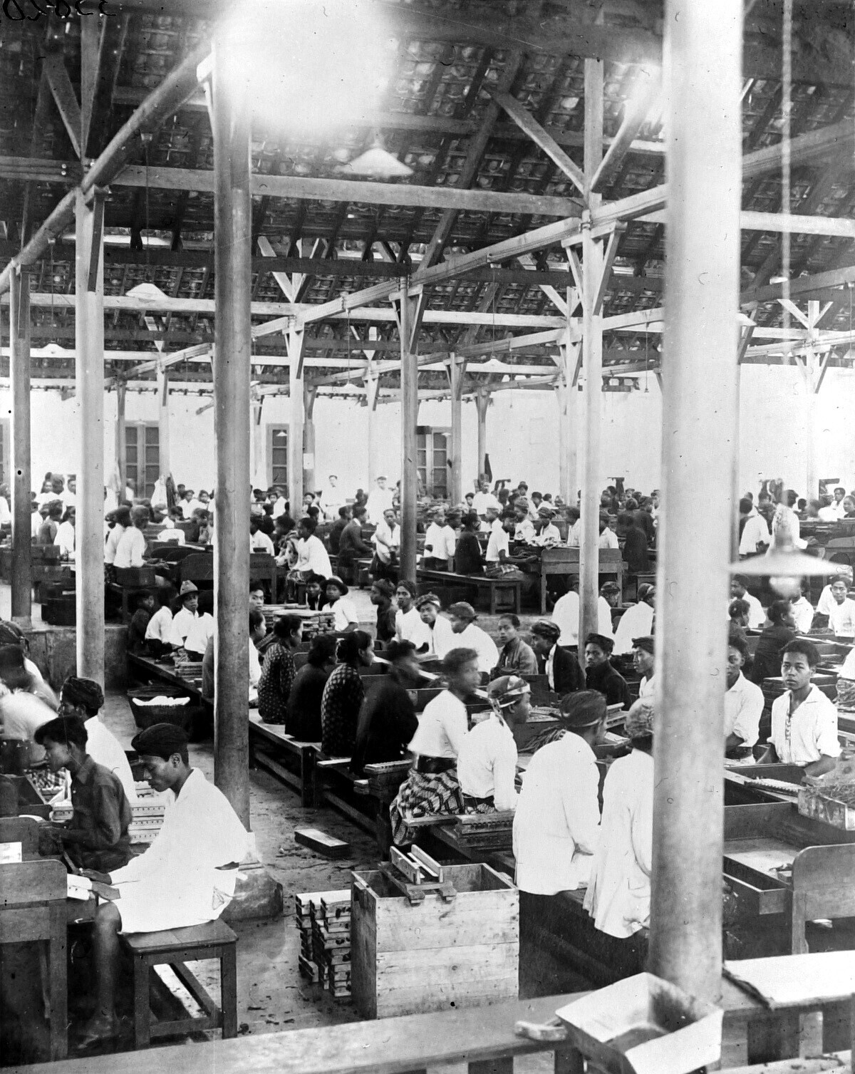 Sigarenmakerij in de sigarenfabriek te Magelang van ...