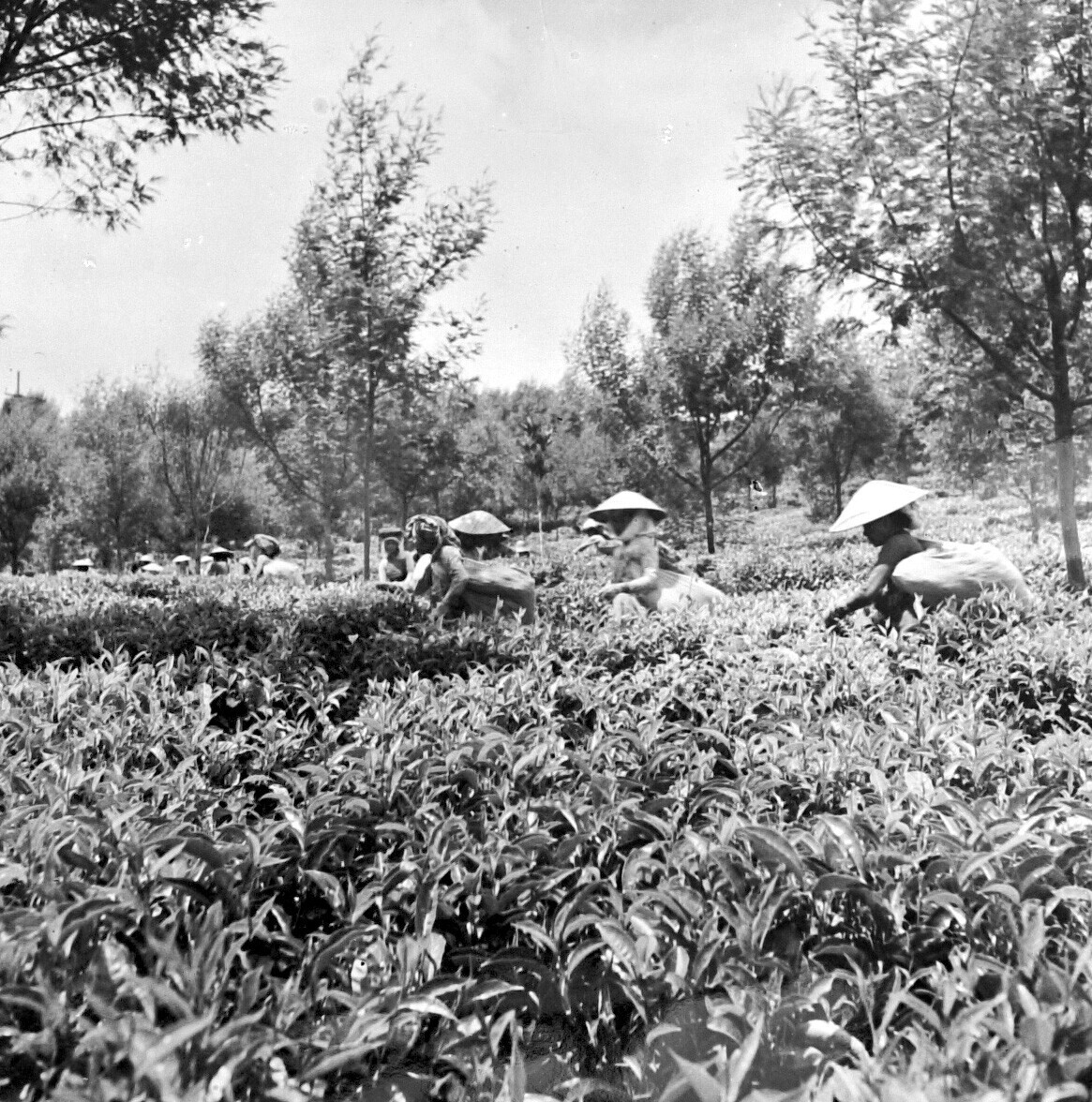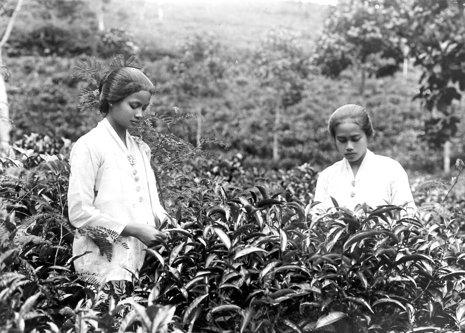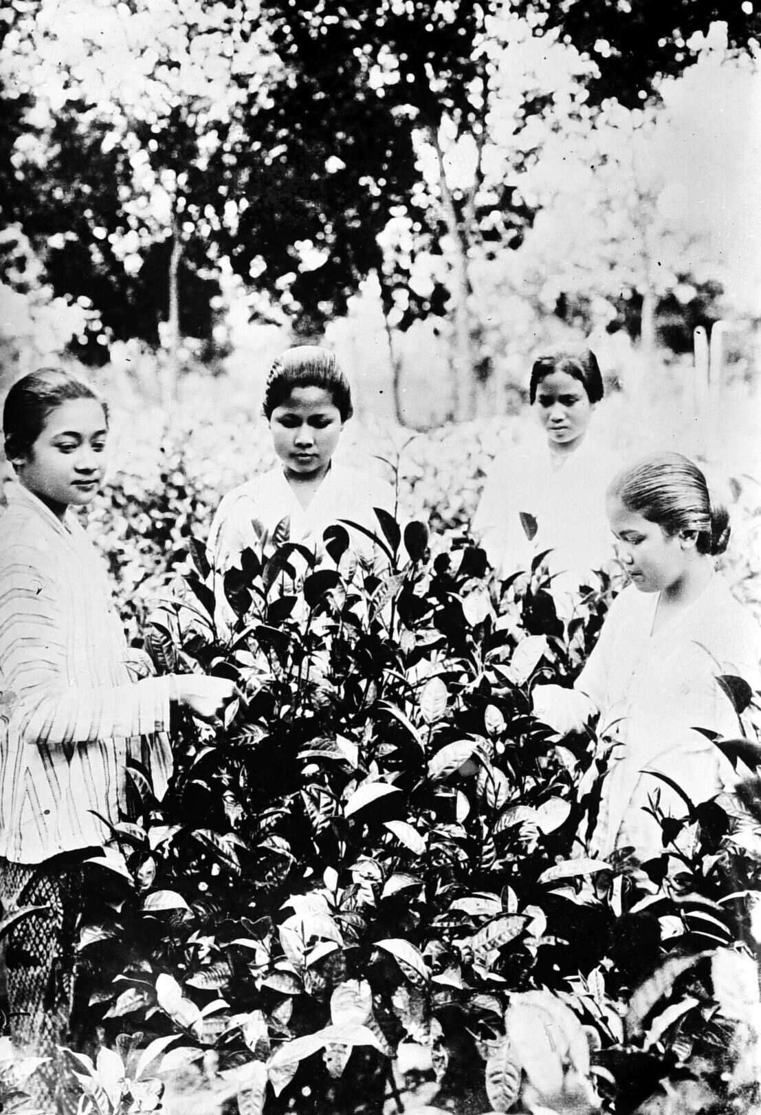 Vrouwen plukken thee en kina Sinanas, Preanger Onder...