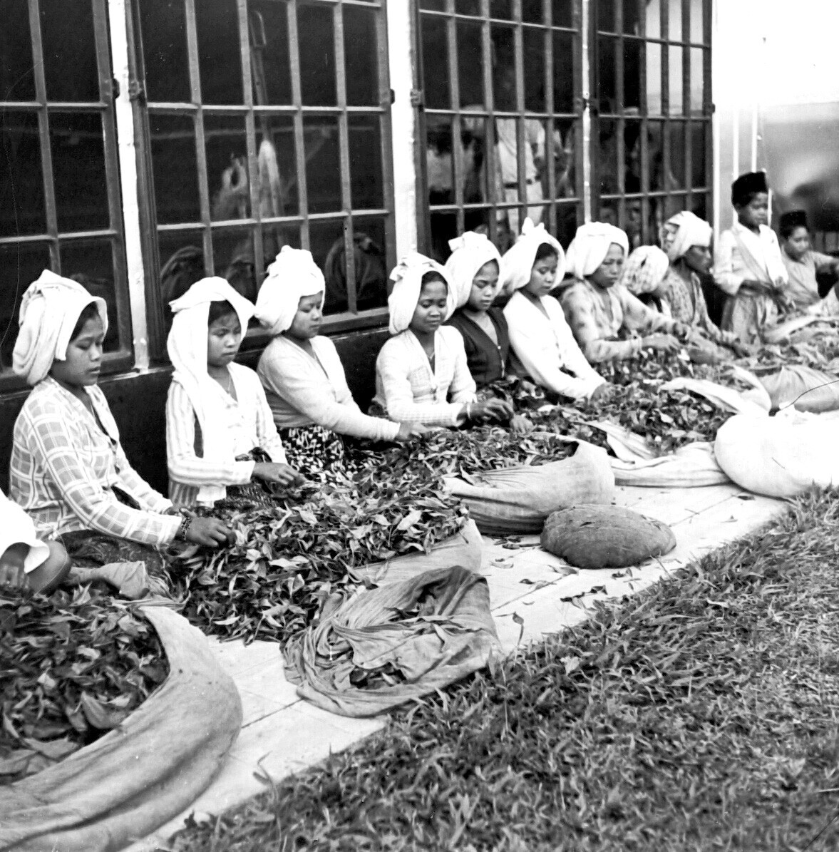 Sortering van krossok (=gedroogde tabaksbladeren), Java