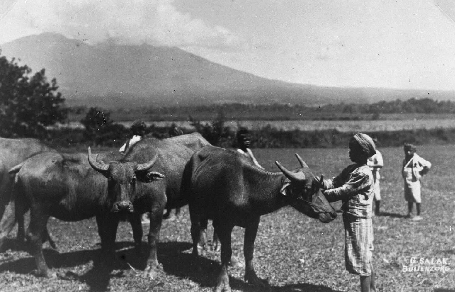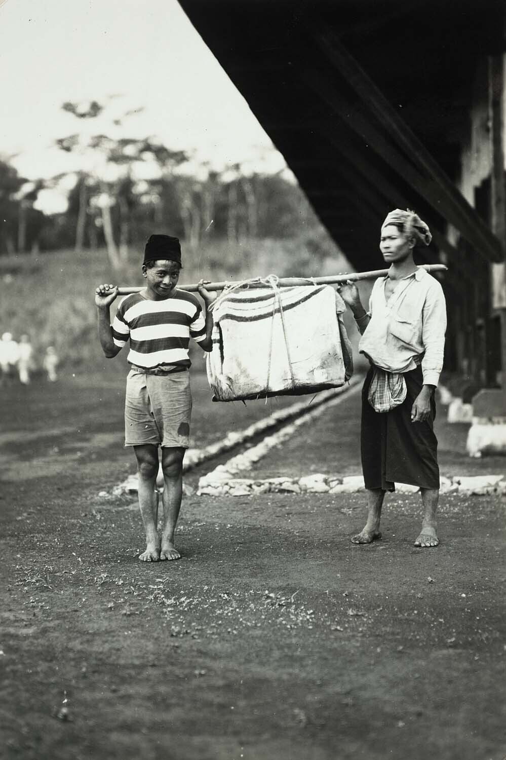 Vissers met netten in de branding bij Tjisolok, Wijn...