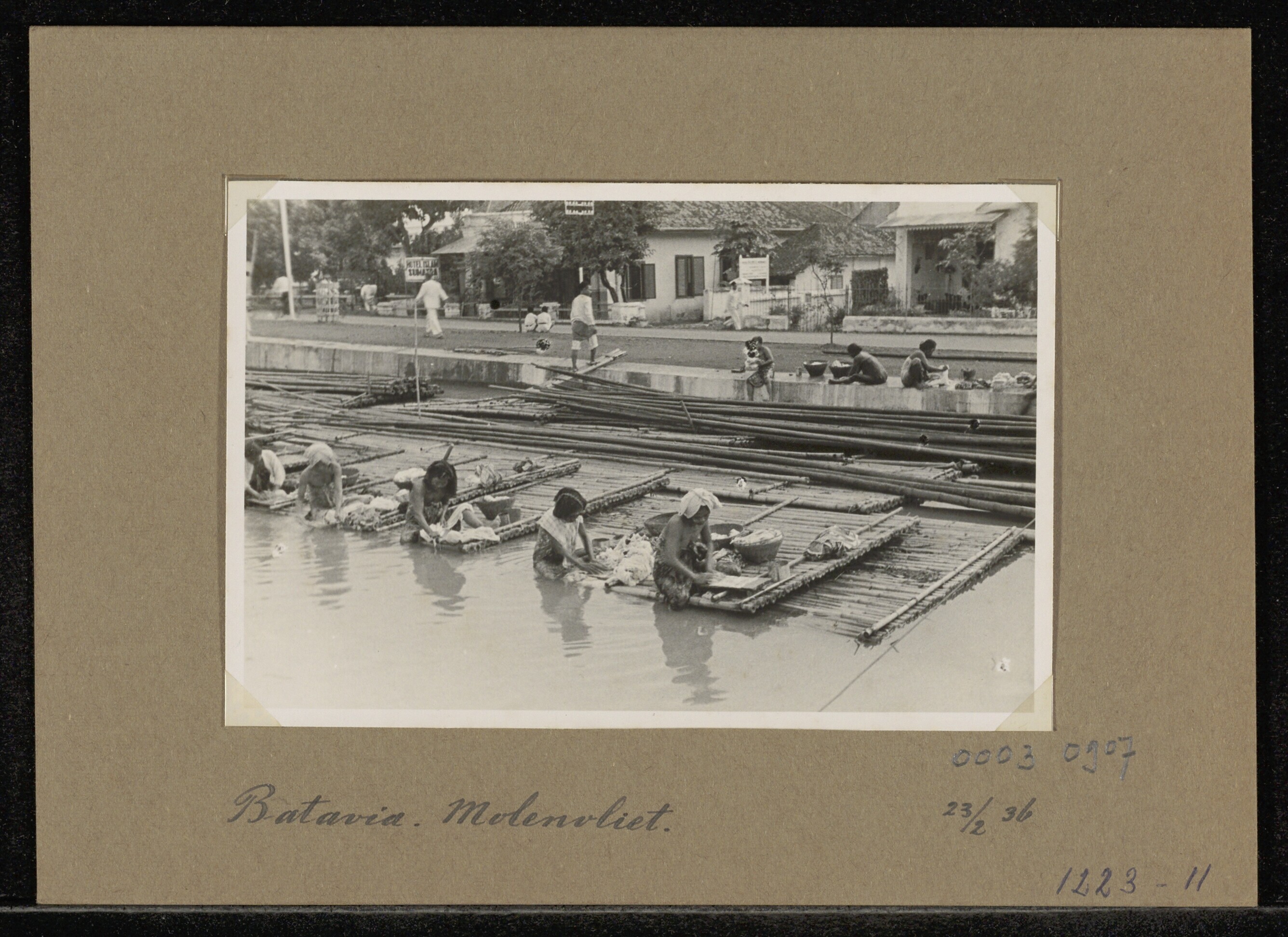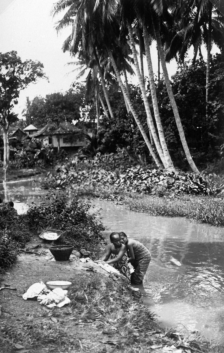 Vrouwen doen de was in de Molenvliet ter hoogte van ...
