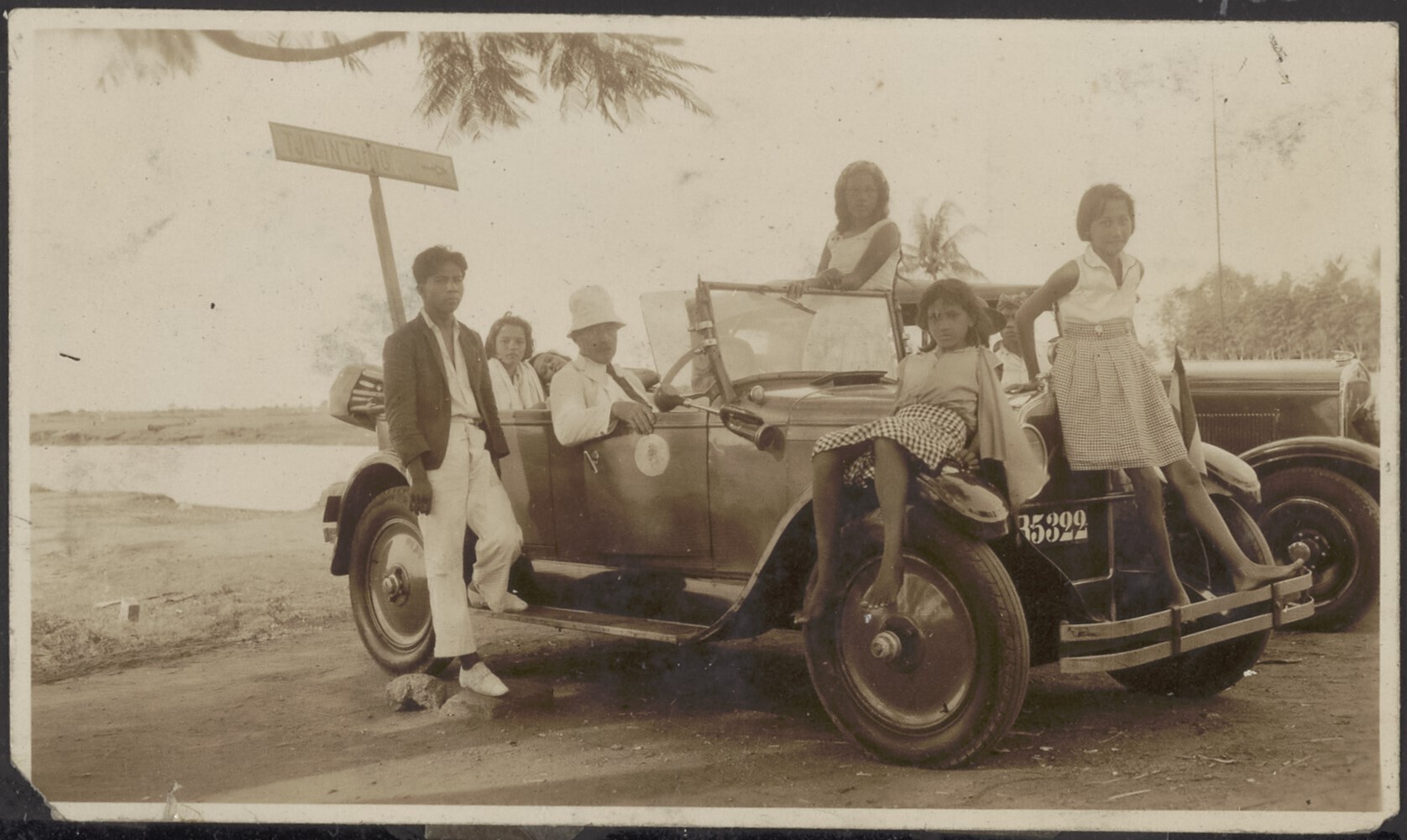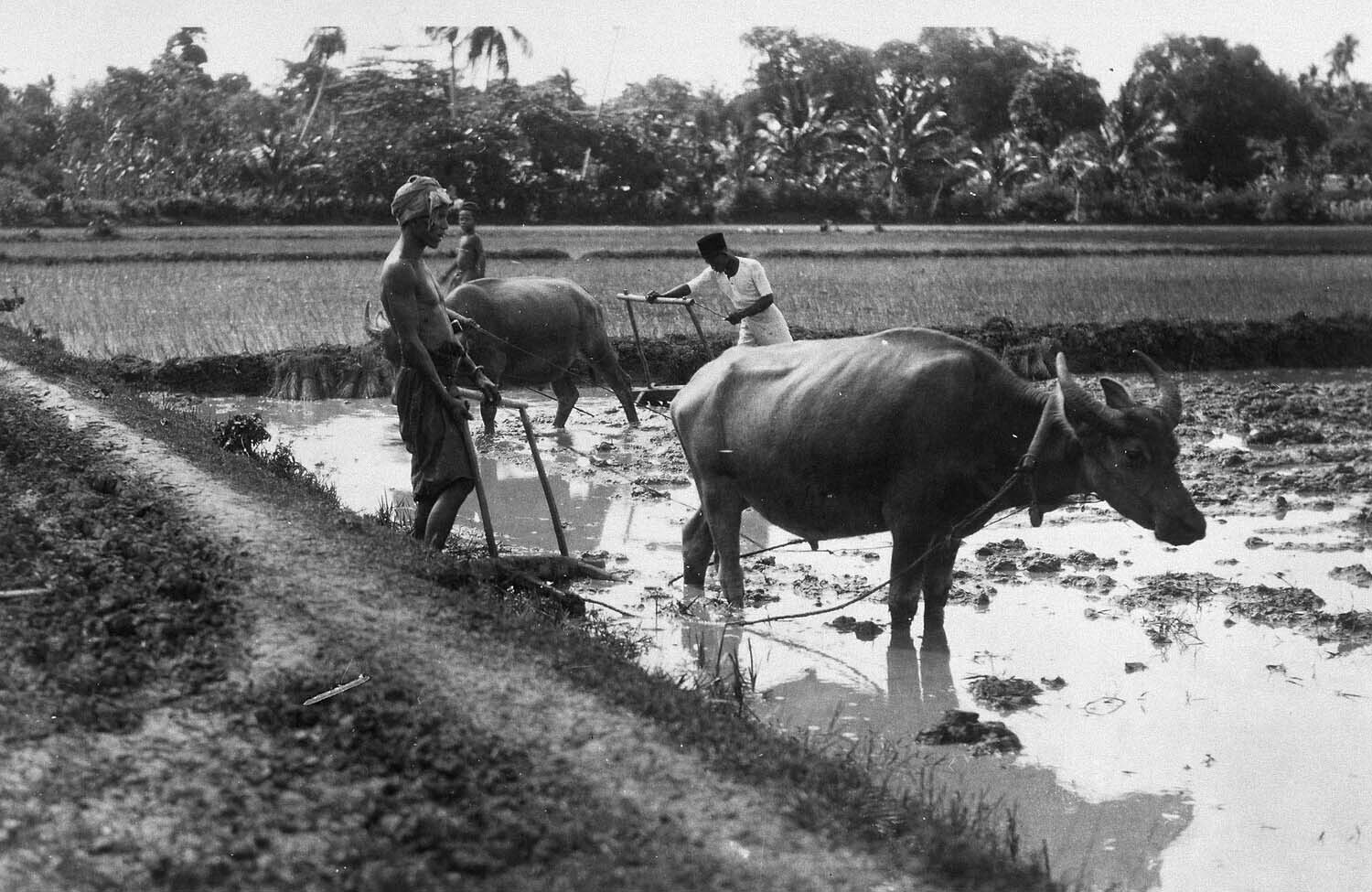 Roekmita en Pandoe Soeradhiningrat in een tuin