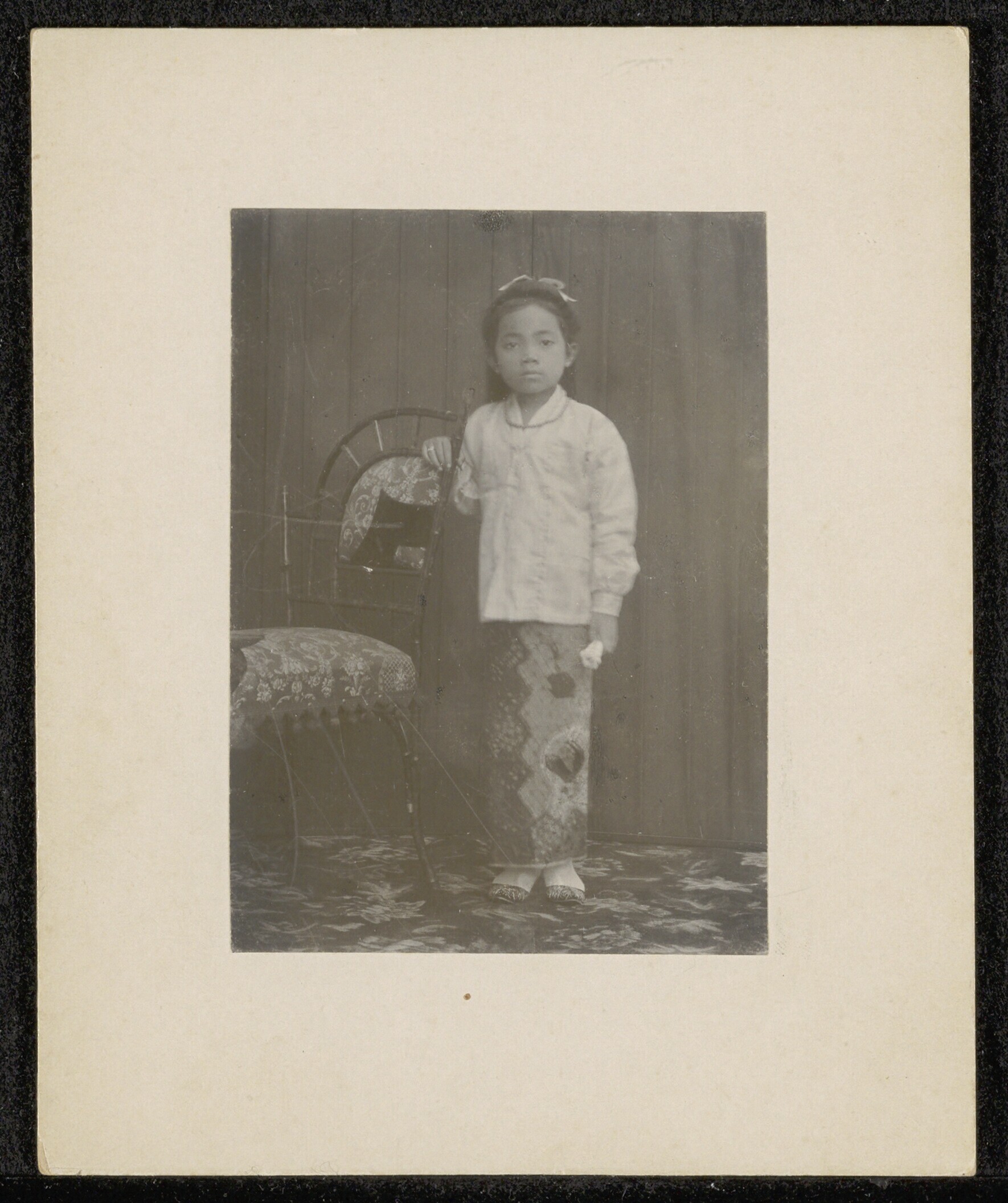 Studioportret ten voeten uit van Njai Raden Wiarsih,...