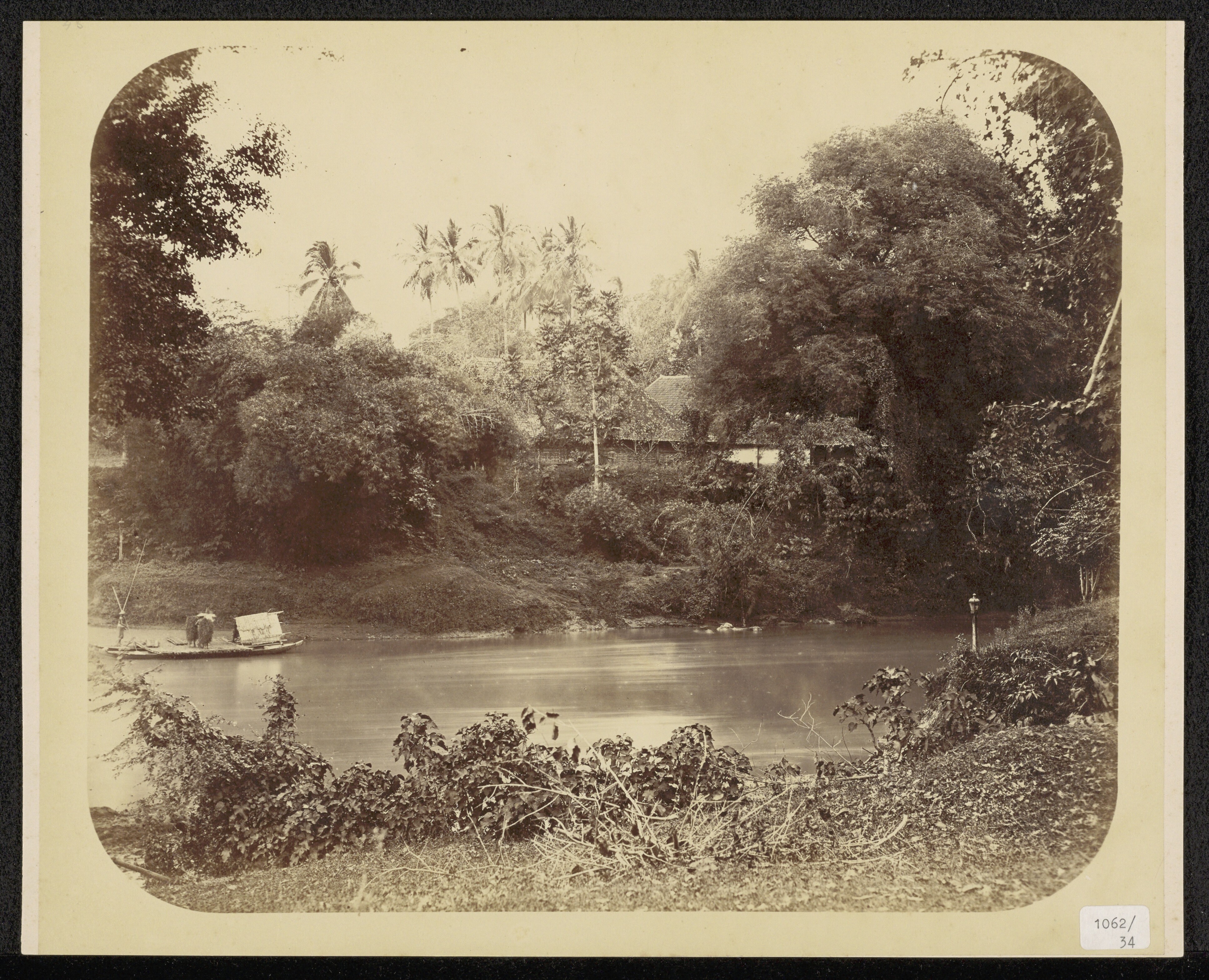 Bamboo rafts in the Ciliwung river, Batavia