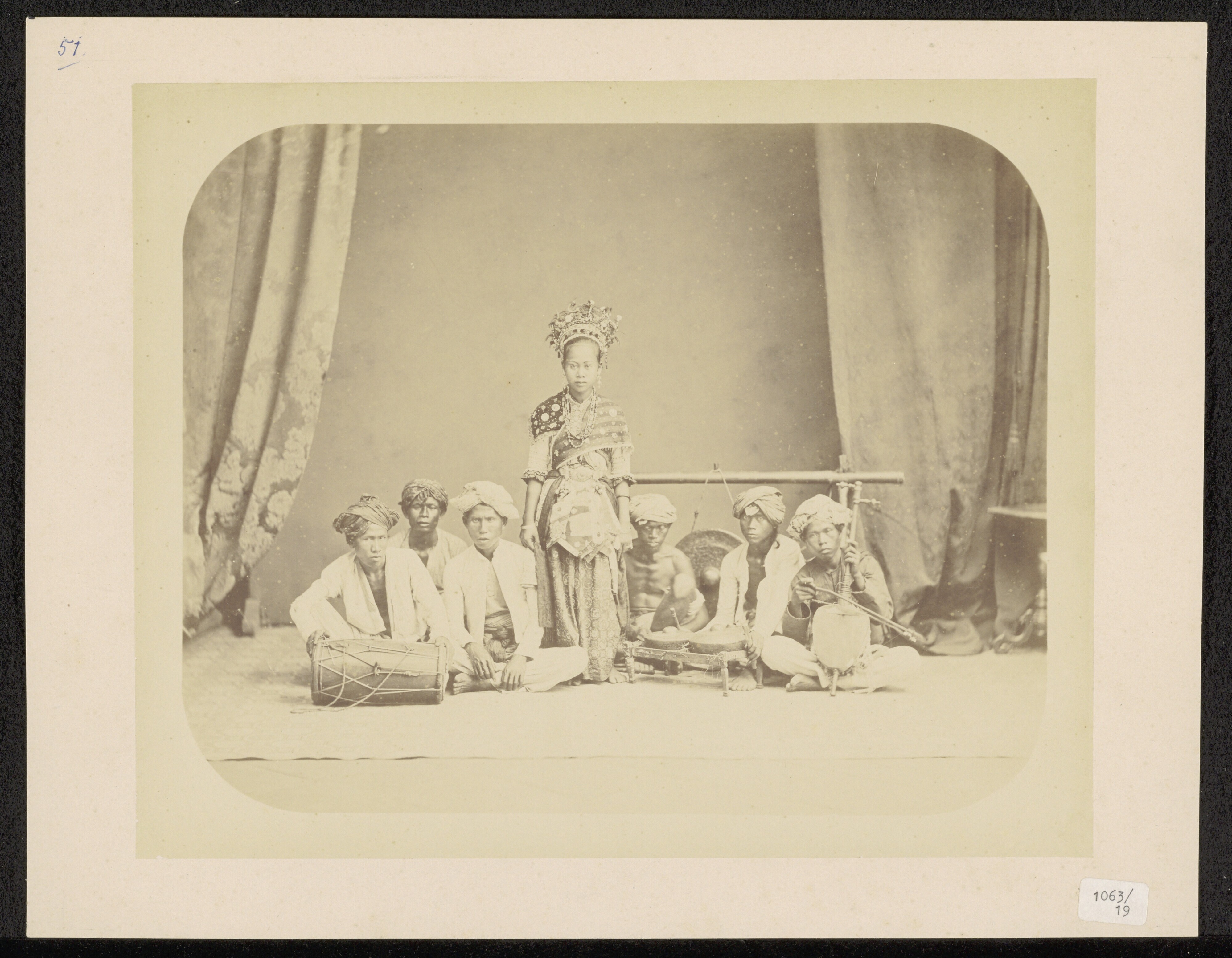 Portrait of a ronggeng dancer in Batavia, accompanie...