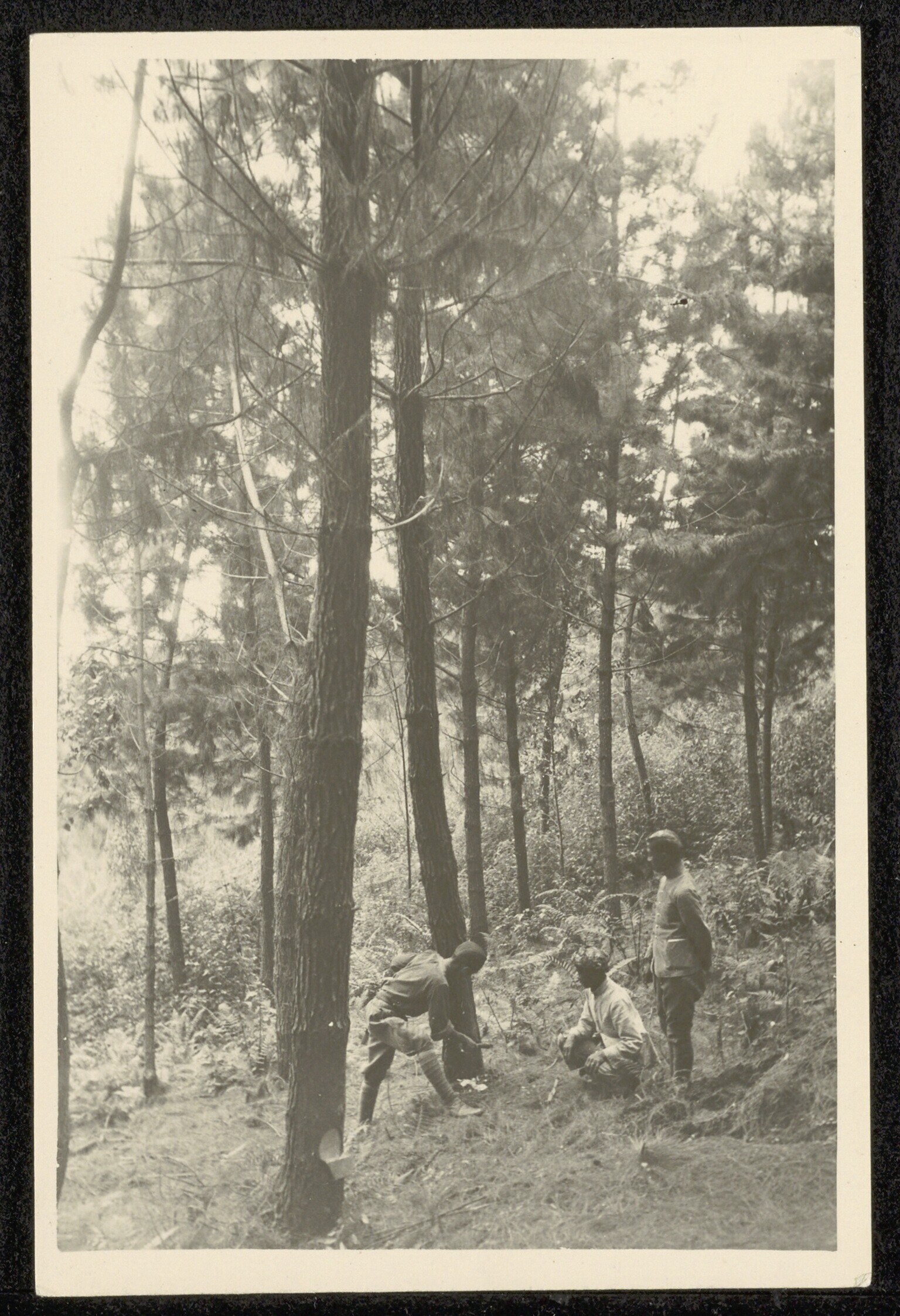 Het aftappen van de hars van Pinus dennenbomen bij A...