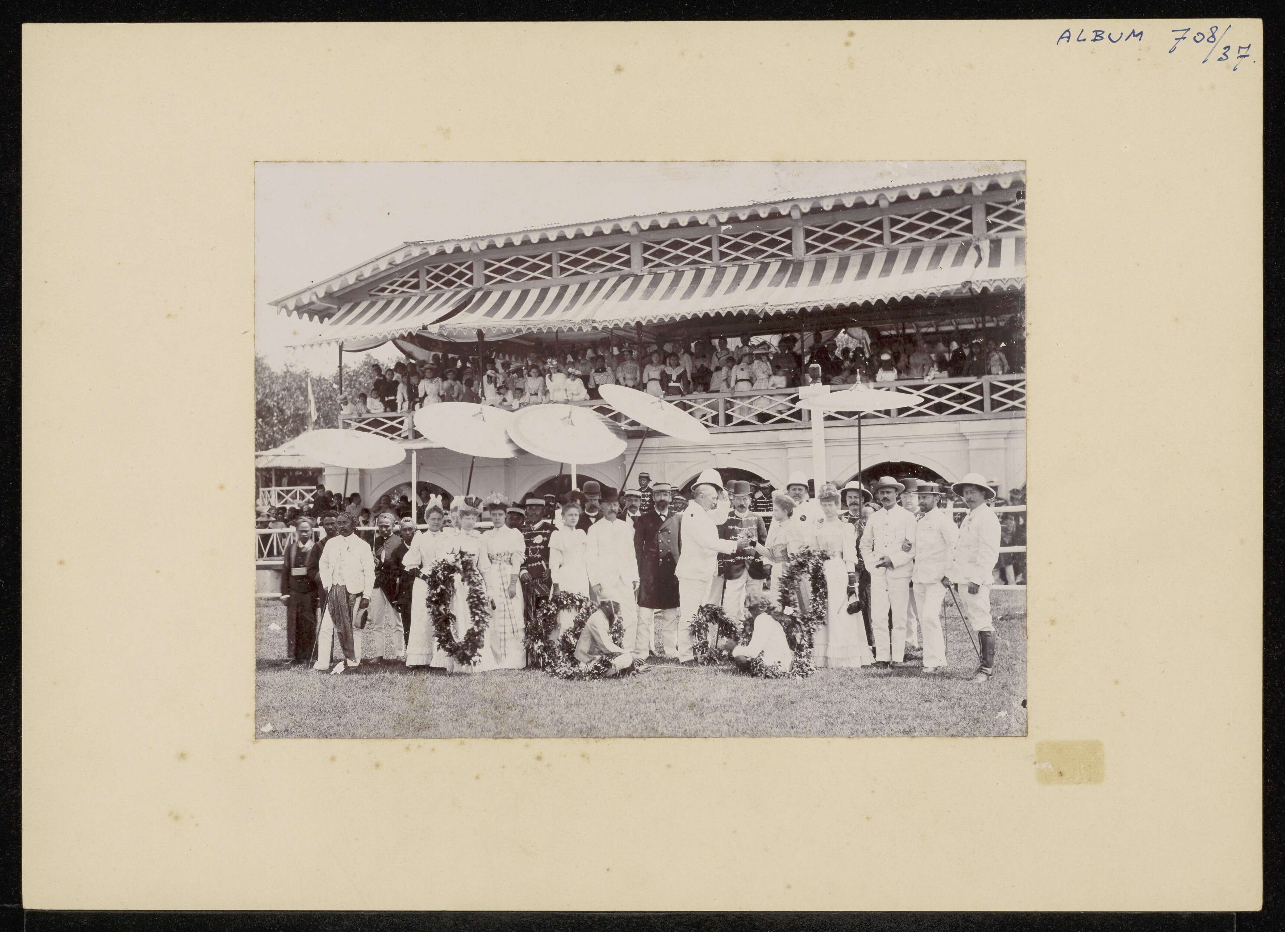 Eduard Julius Kerkhoven receiving flowers at the hor...