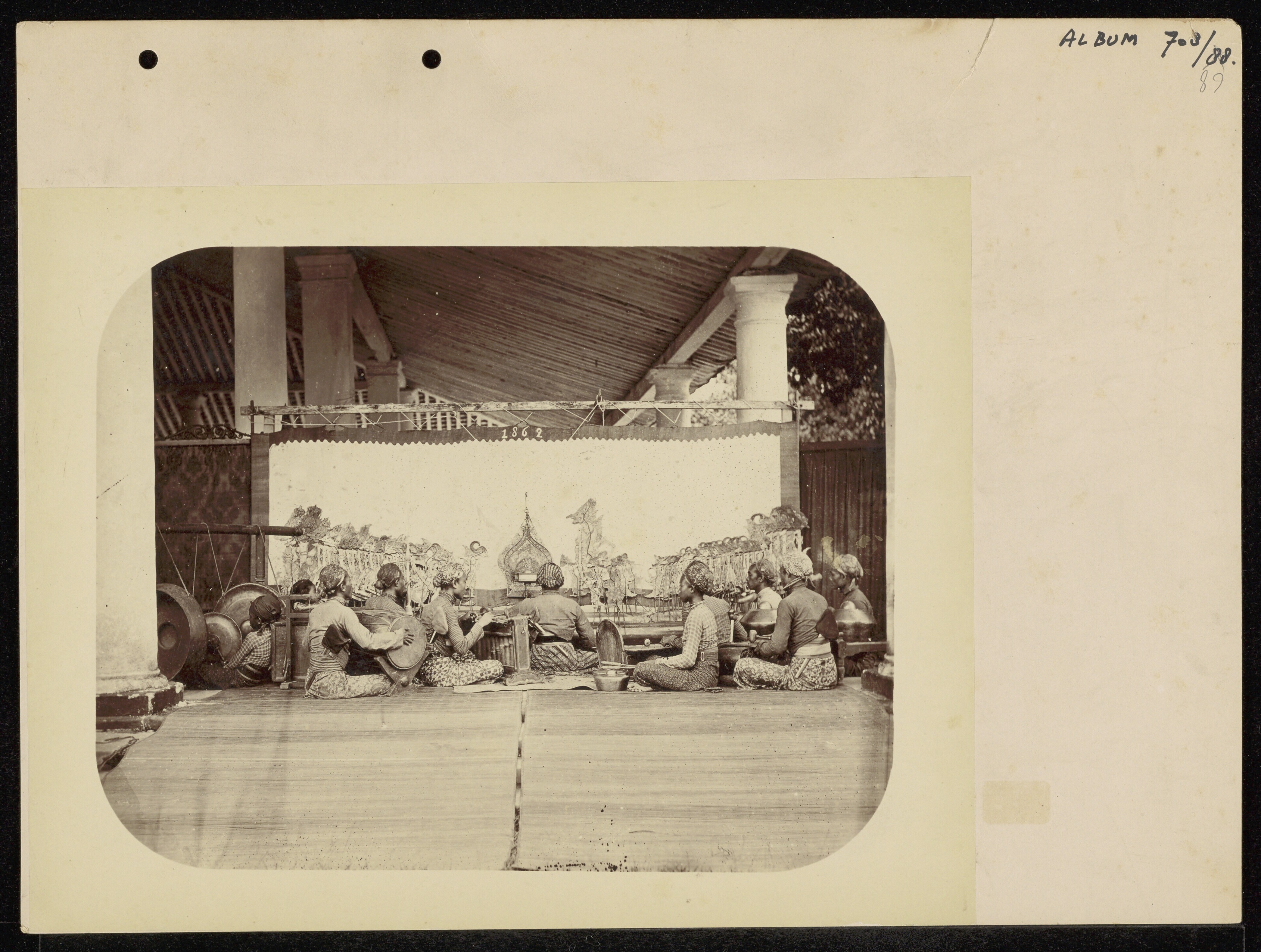 A wayang kulit performance accompanied by a gamelan ...