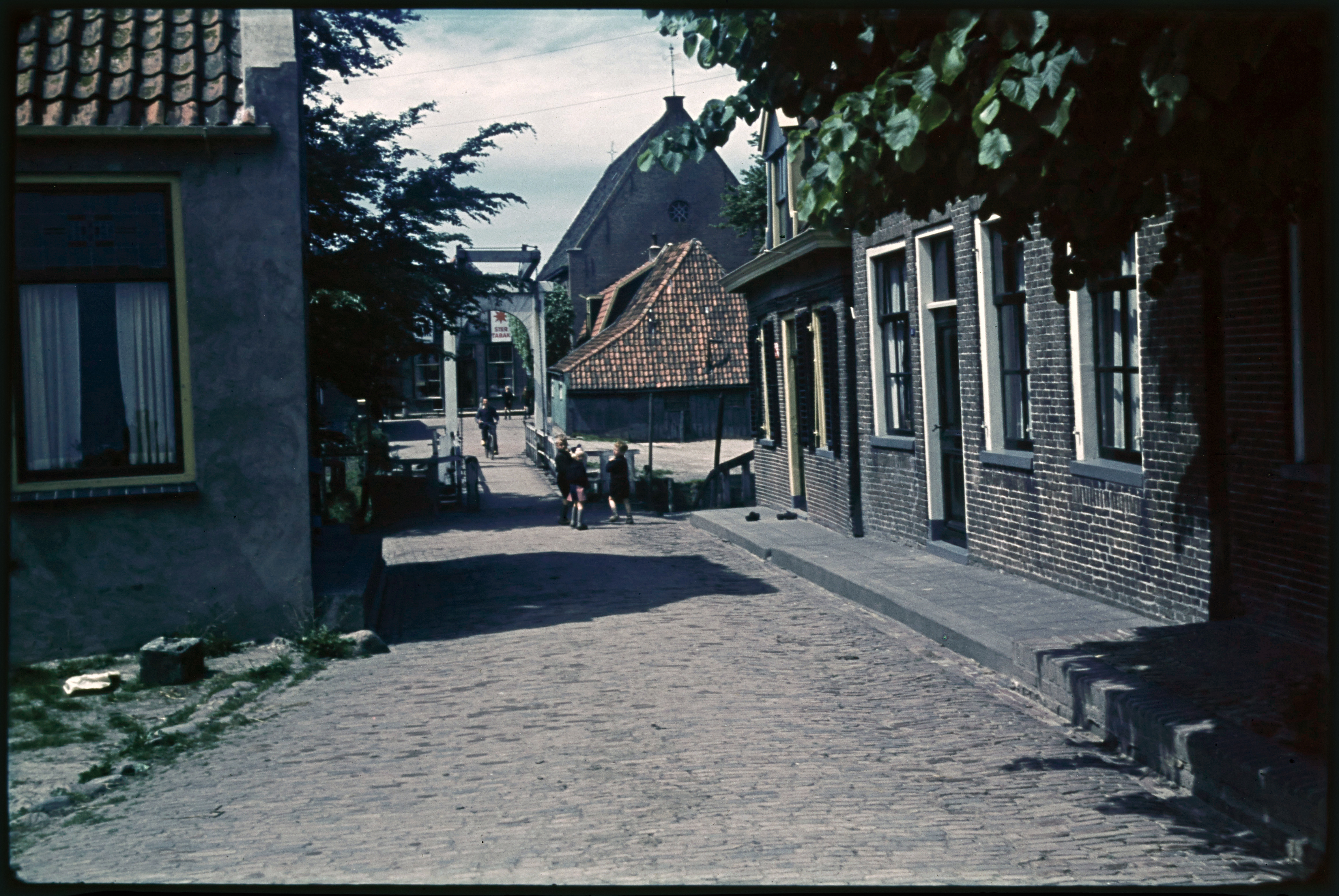 Huizen aan pleintje met daarachter de Ned. Herv. ker...