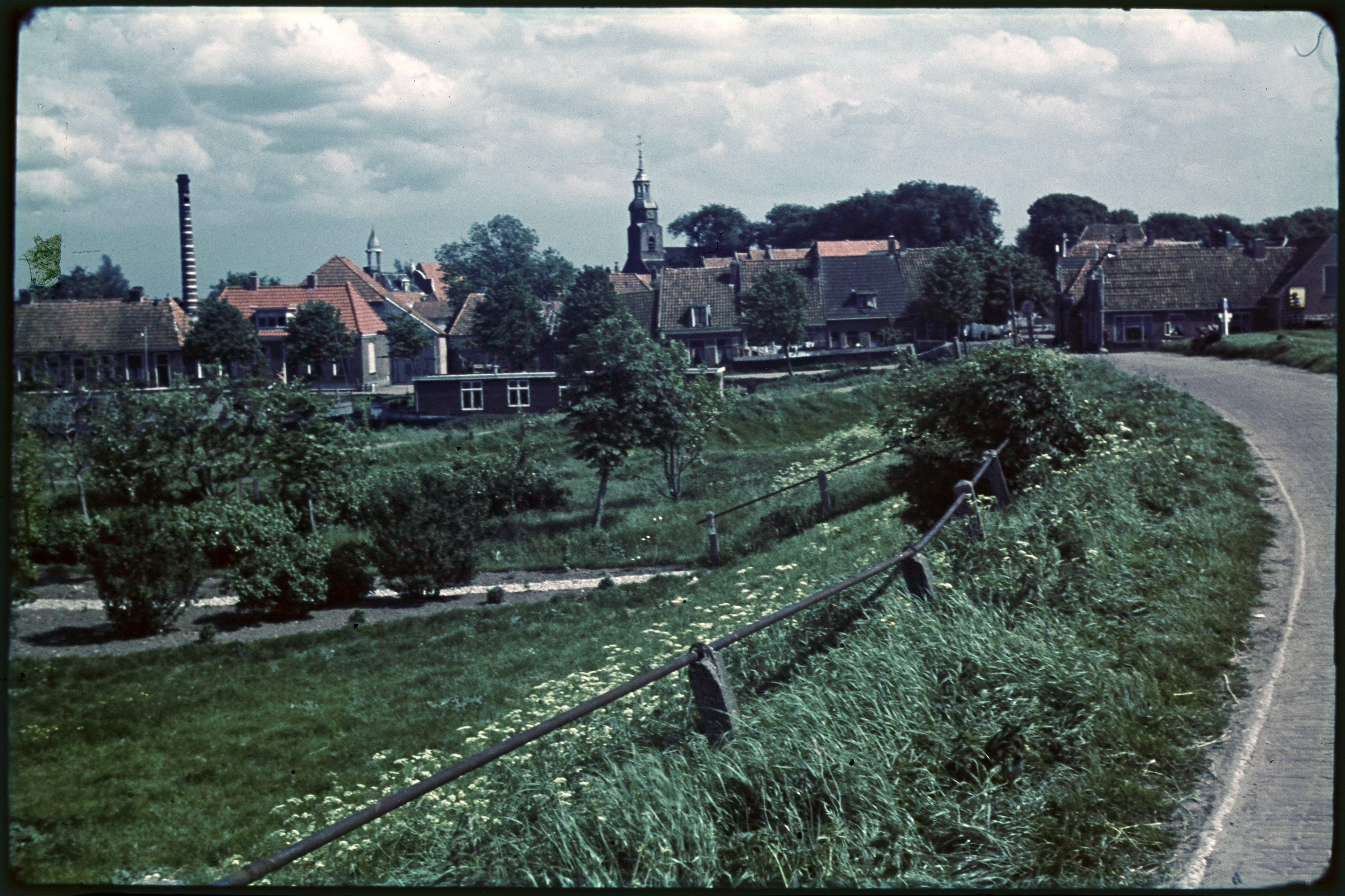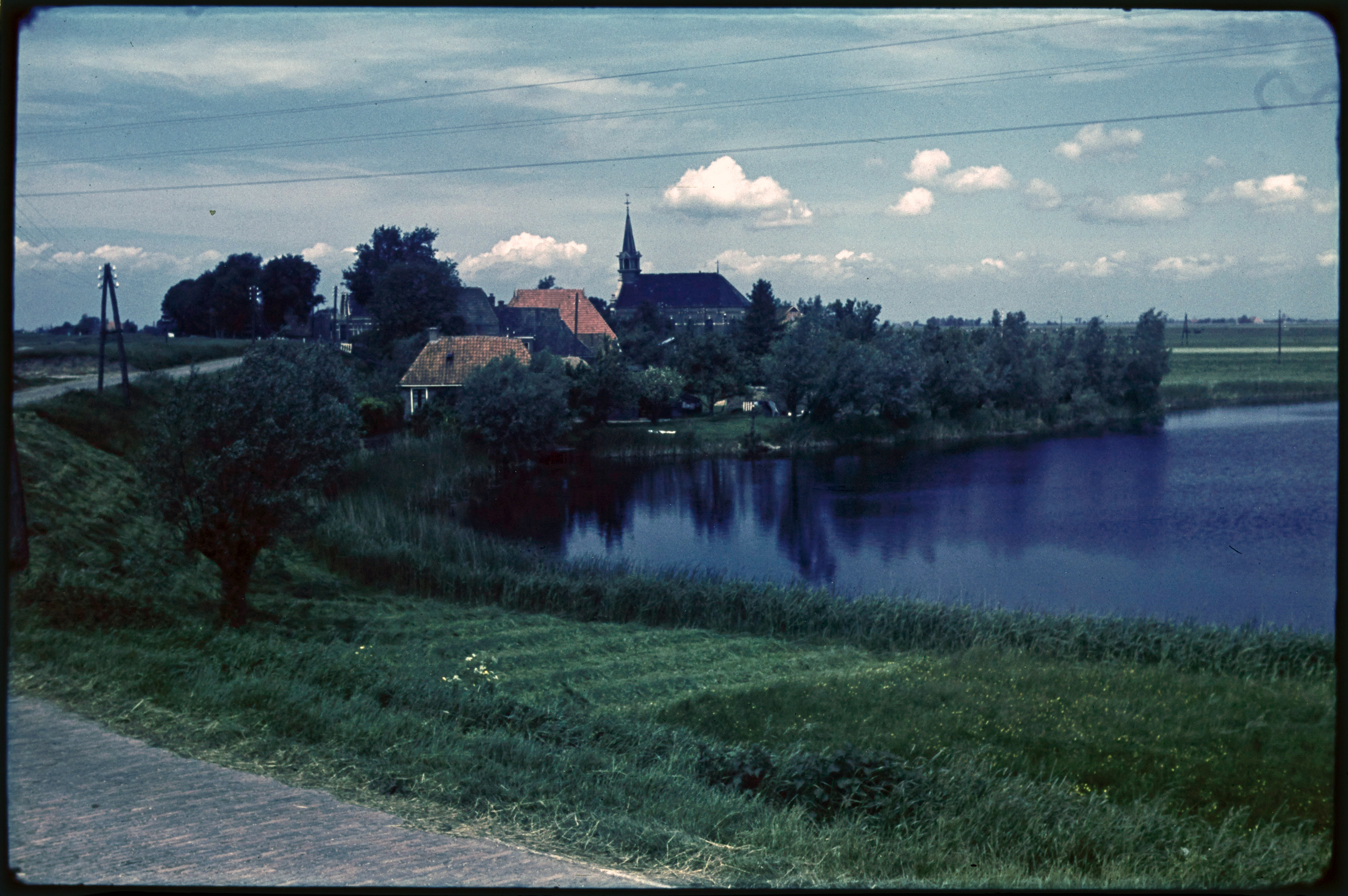 Landweg met de toren van de Ned. Herv. kerk in de verte