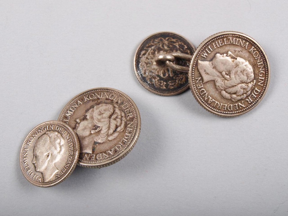Knoop, manchet gemaakt van 1 dubbeltje en 1 kwartje