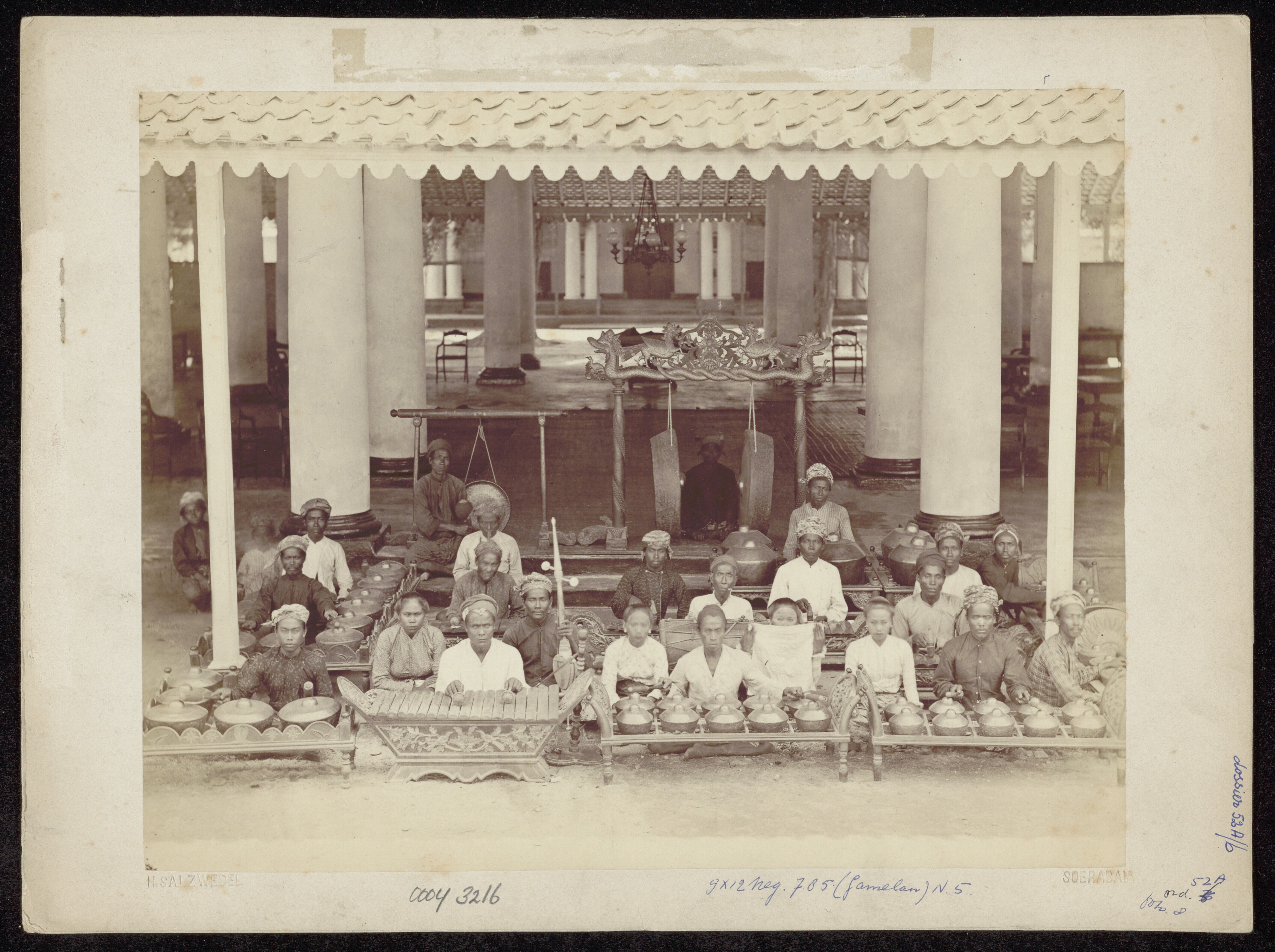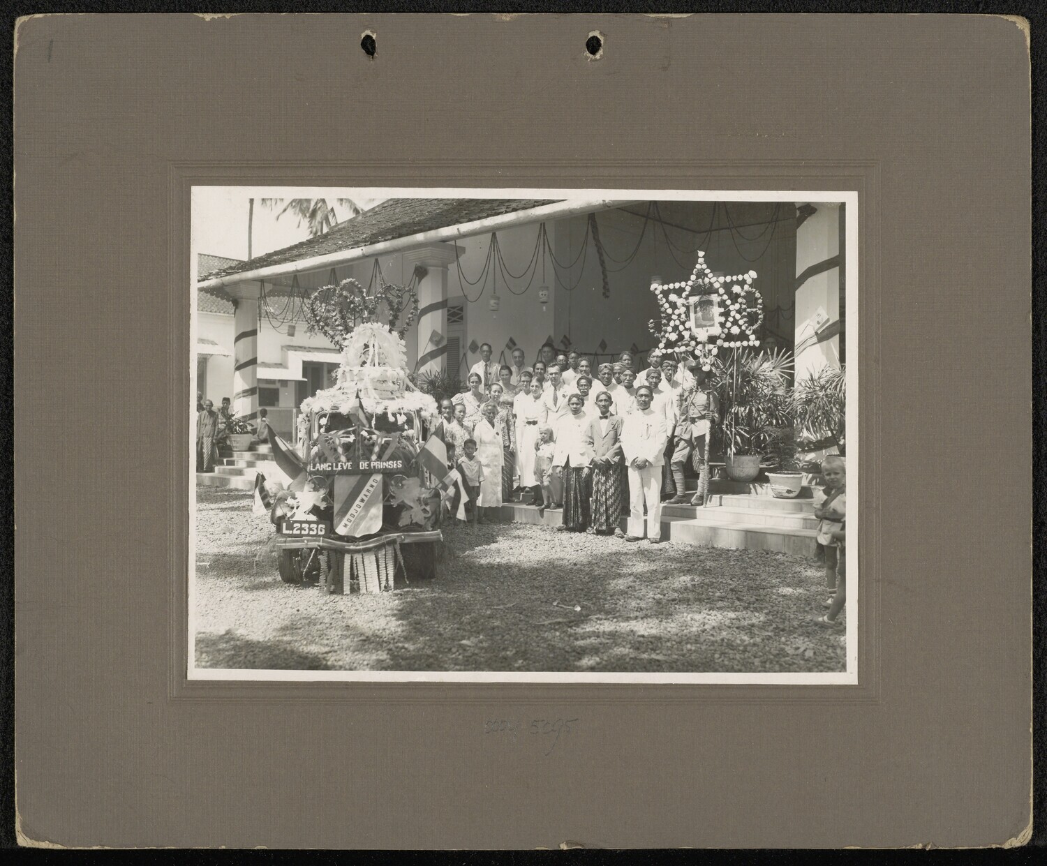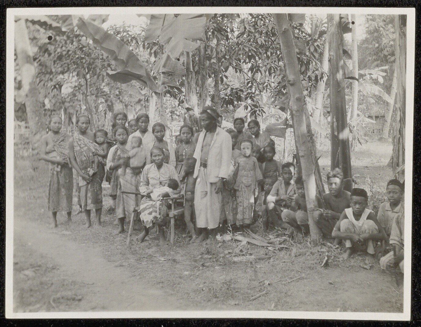 Javaanse arbeiders en kinderen poseren met een Europ...