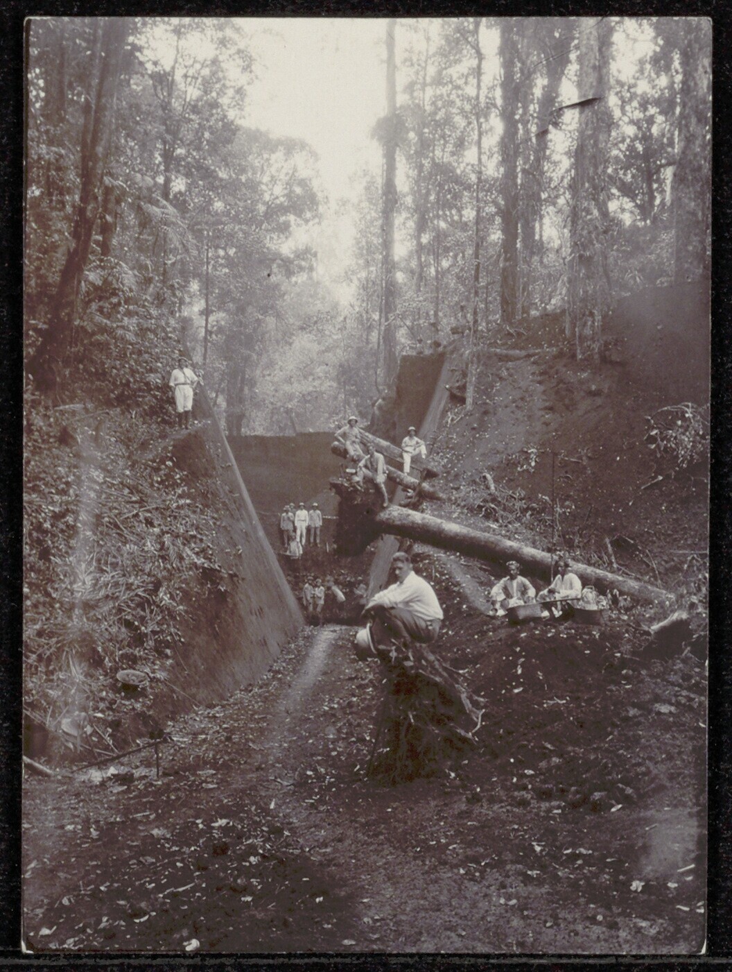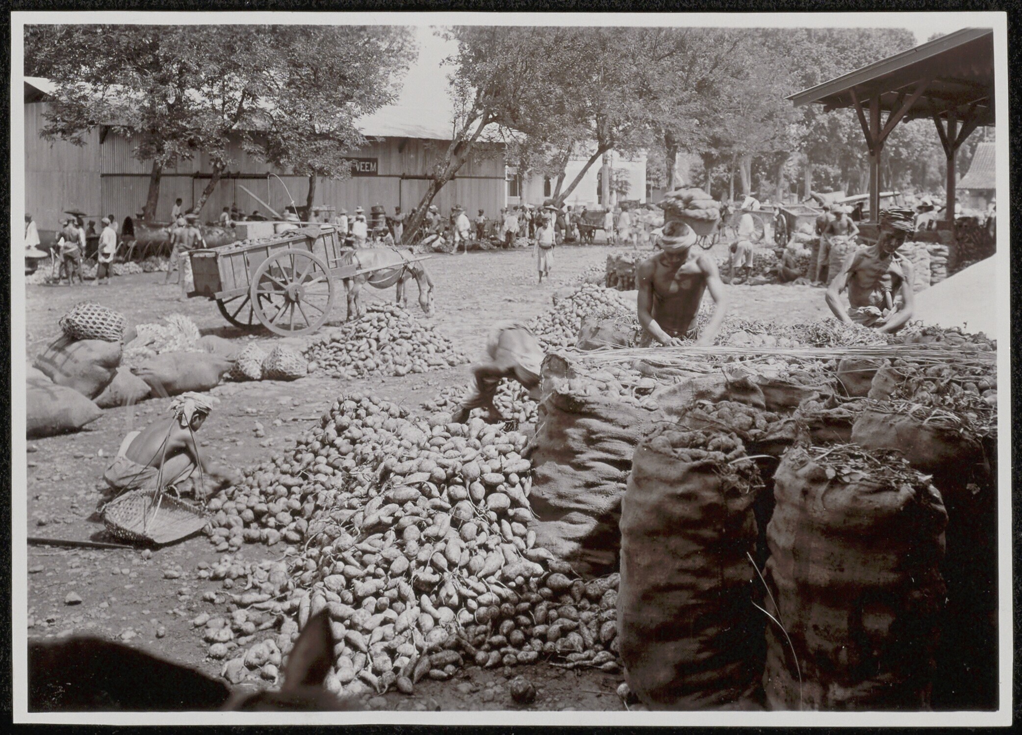 Europeanen en Indonesiërs tijdens grondbewerking op ...