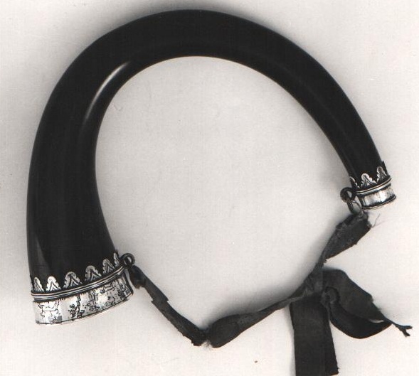 Jachthoorn met op de band van de mond rondom een jac...