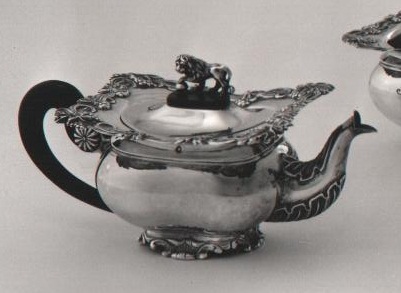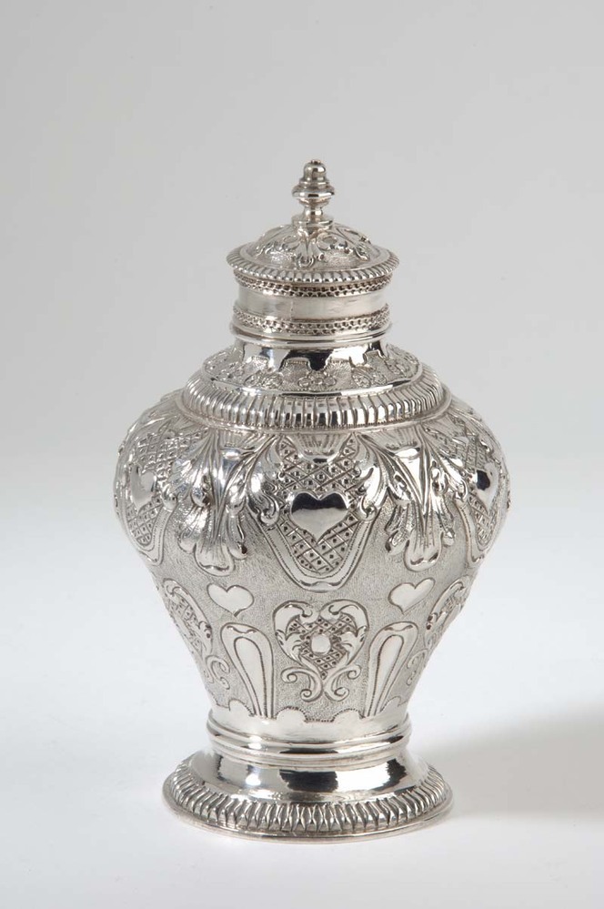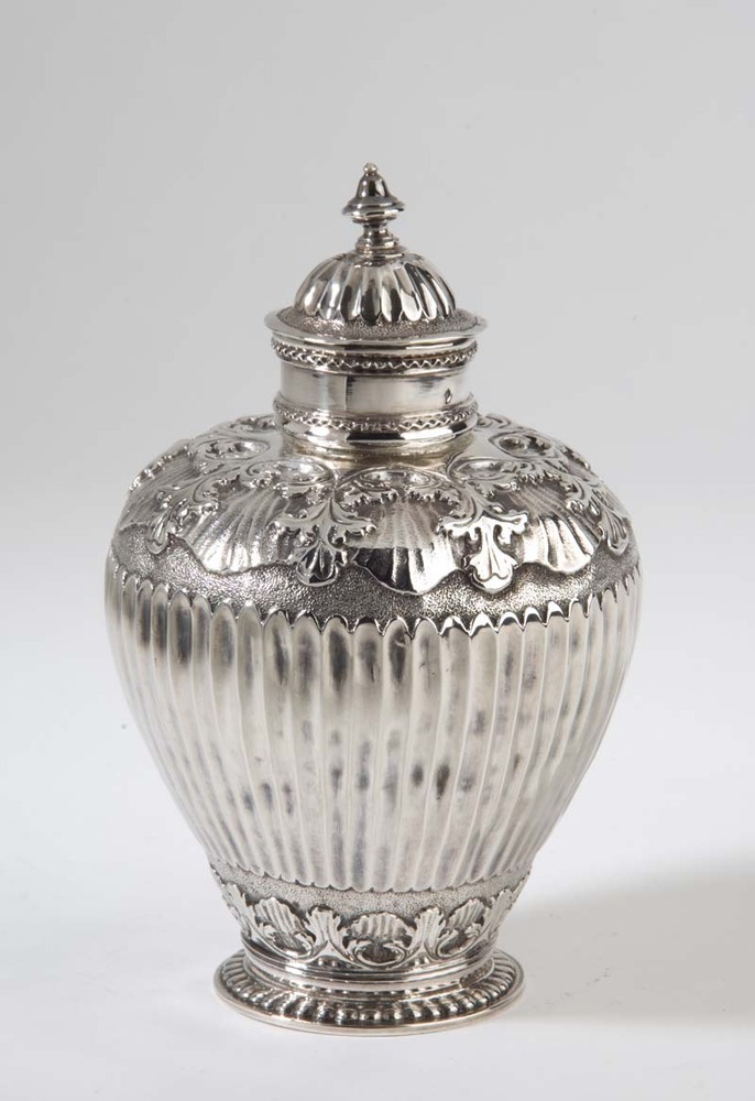 Theebus met op schouder zes afhangende acanthusblade...
