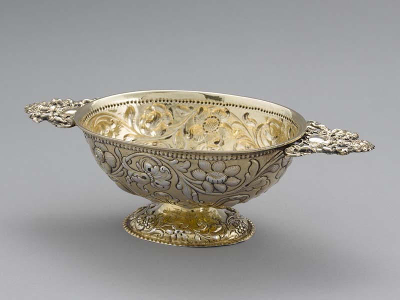 Brandewijnkom met bovenop de oren acanthusbladen, vi...