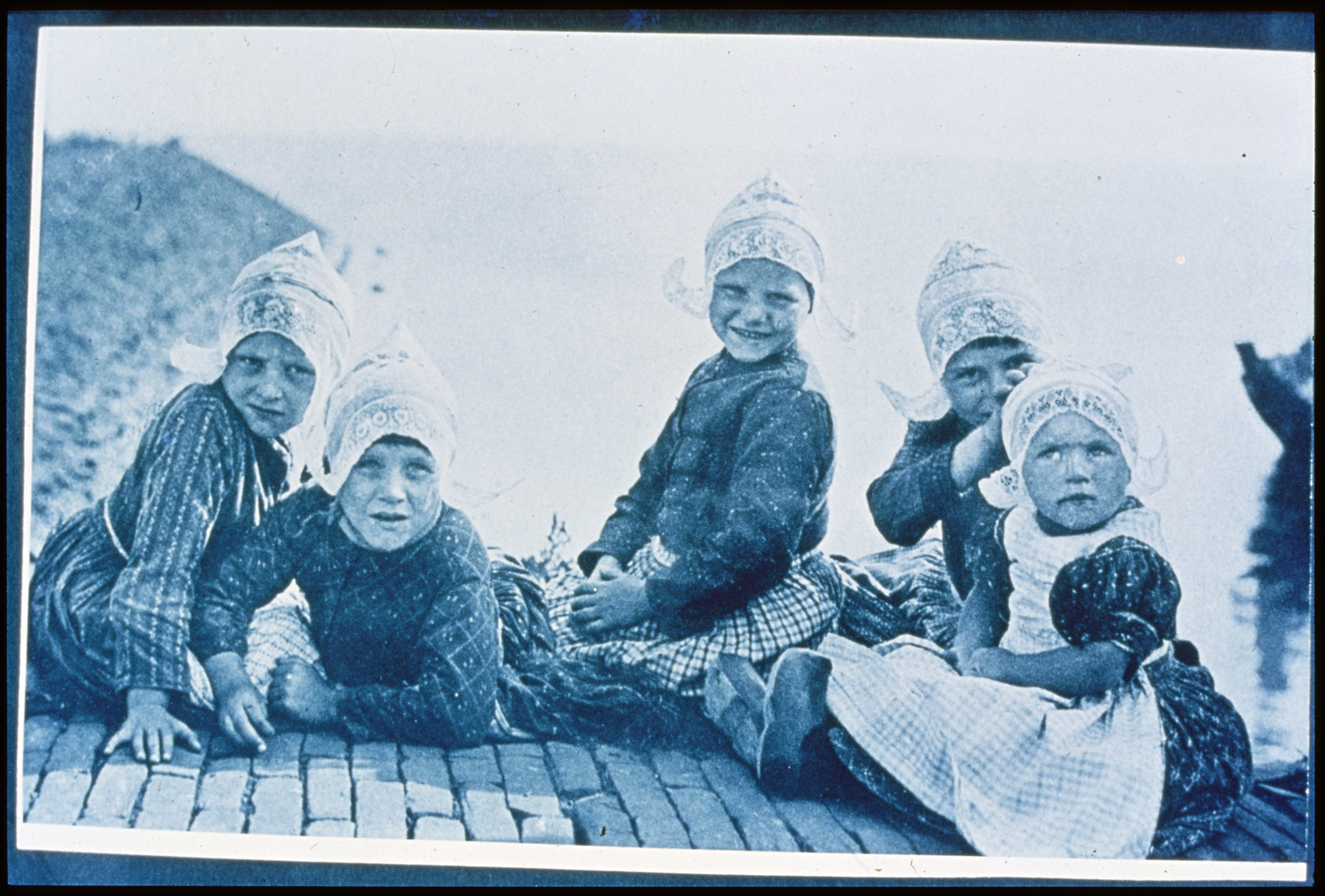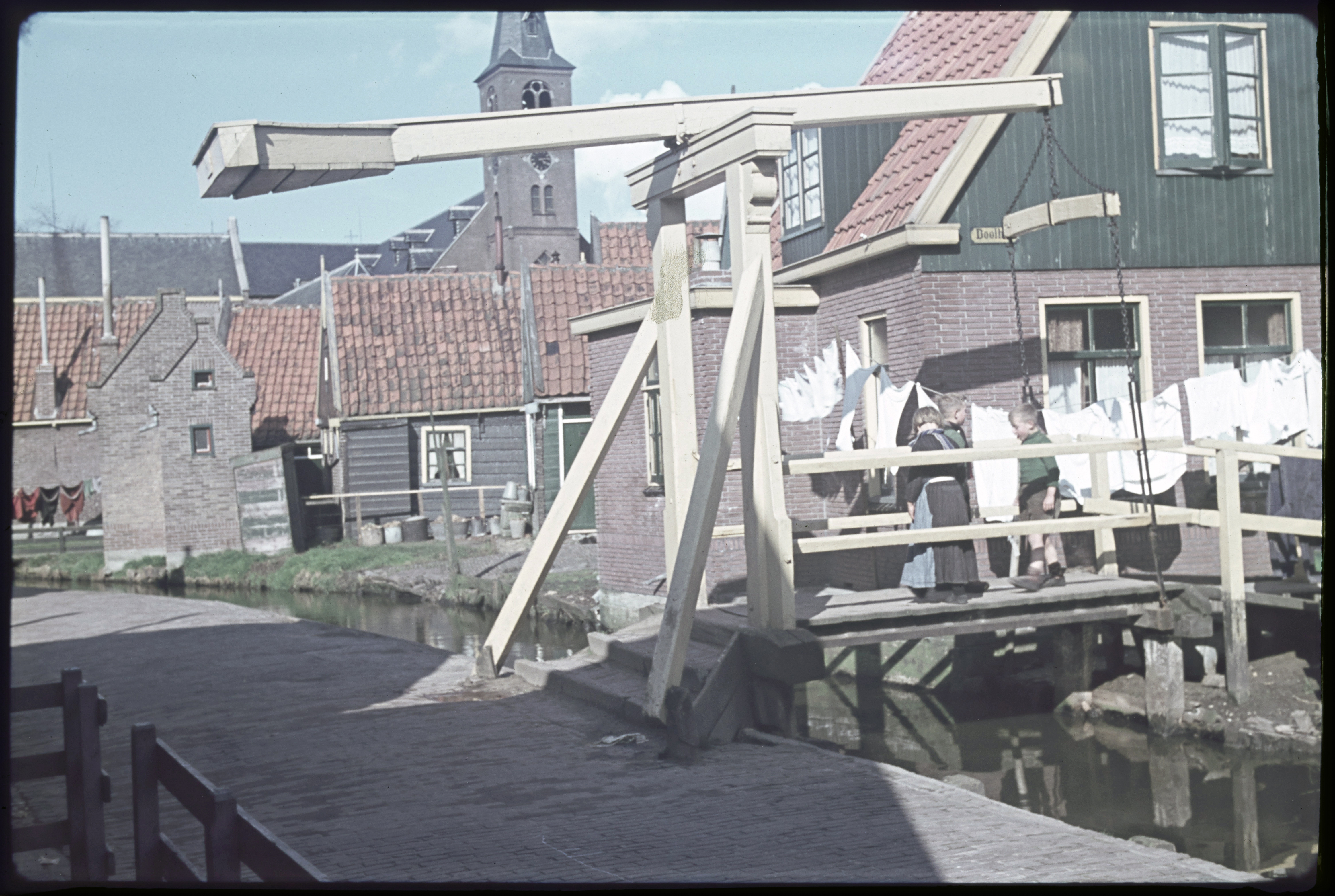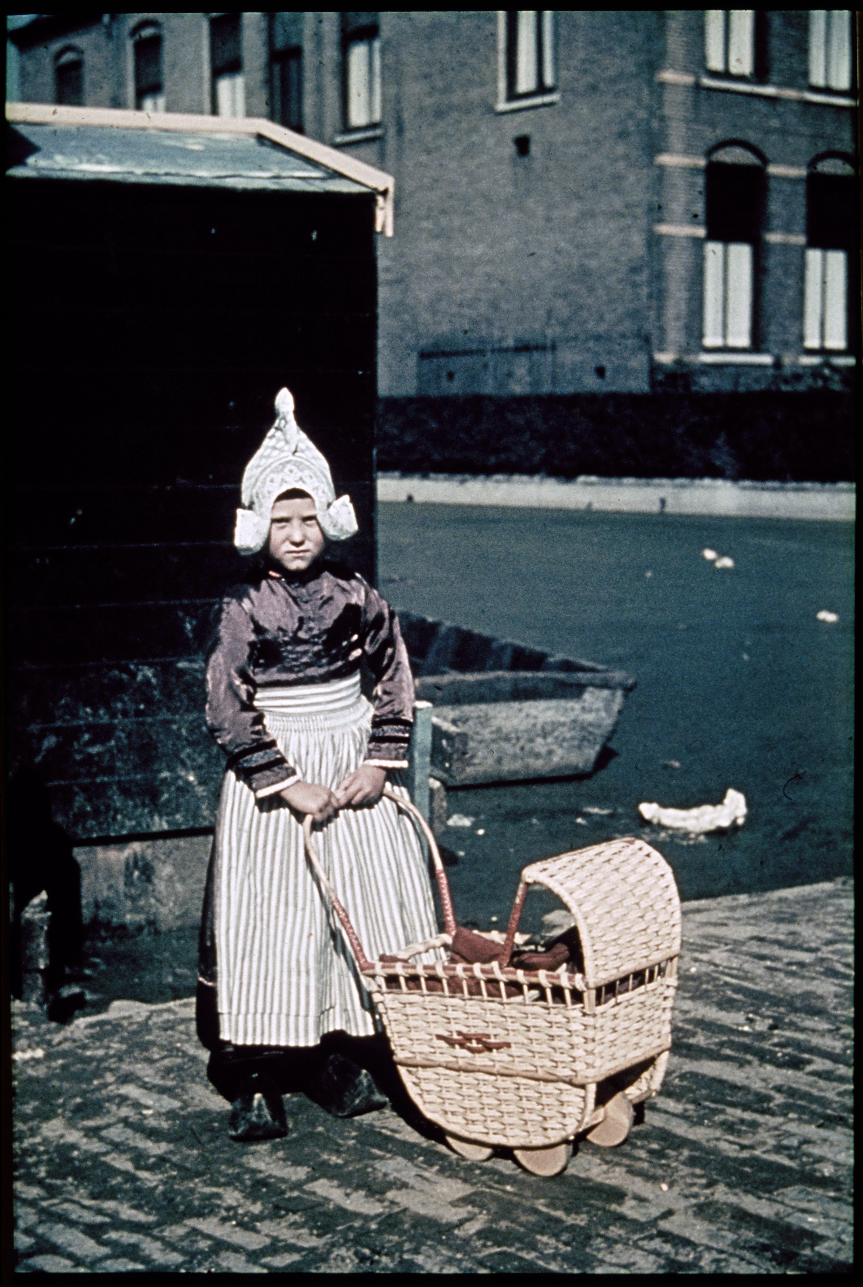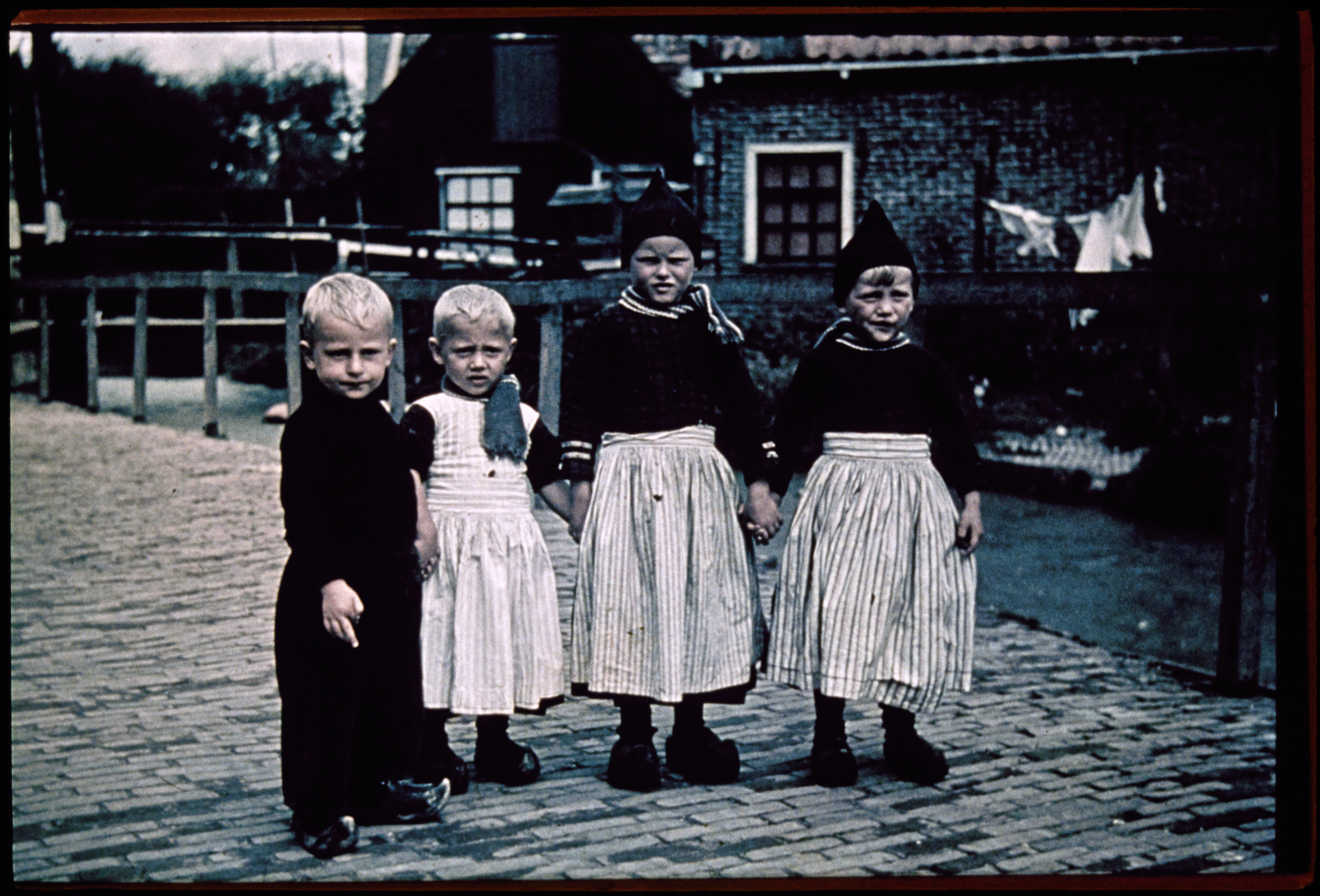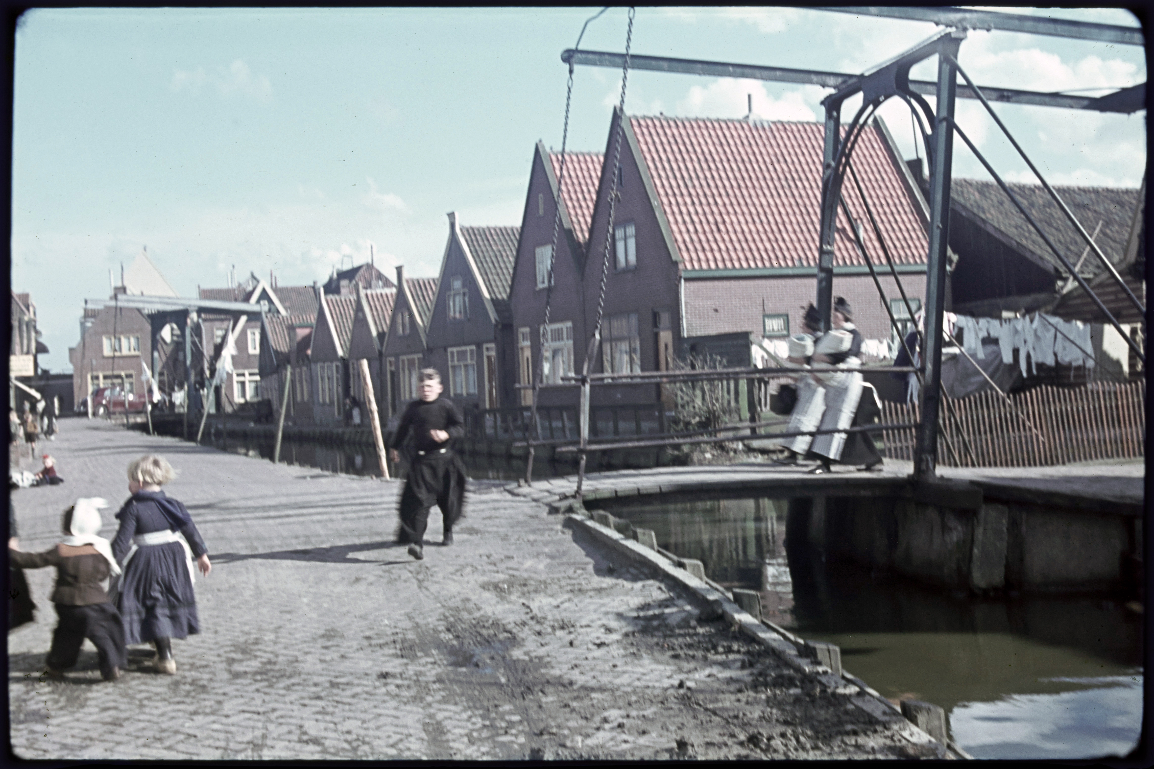 Straatbeeld met volendamse kinderen.