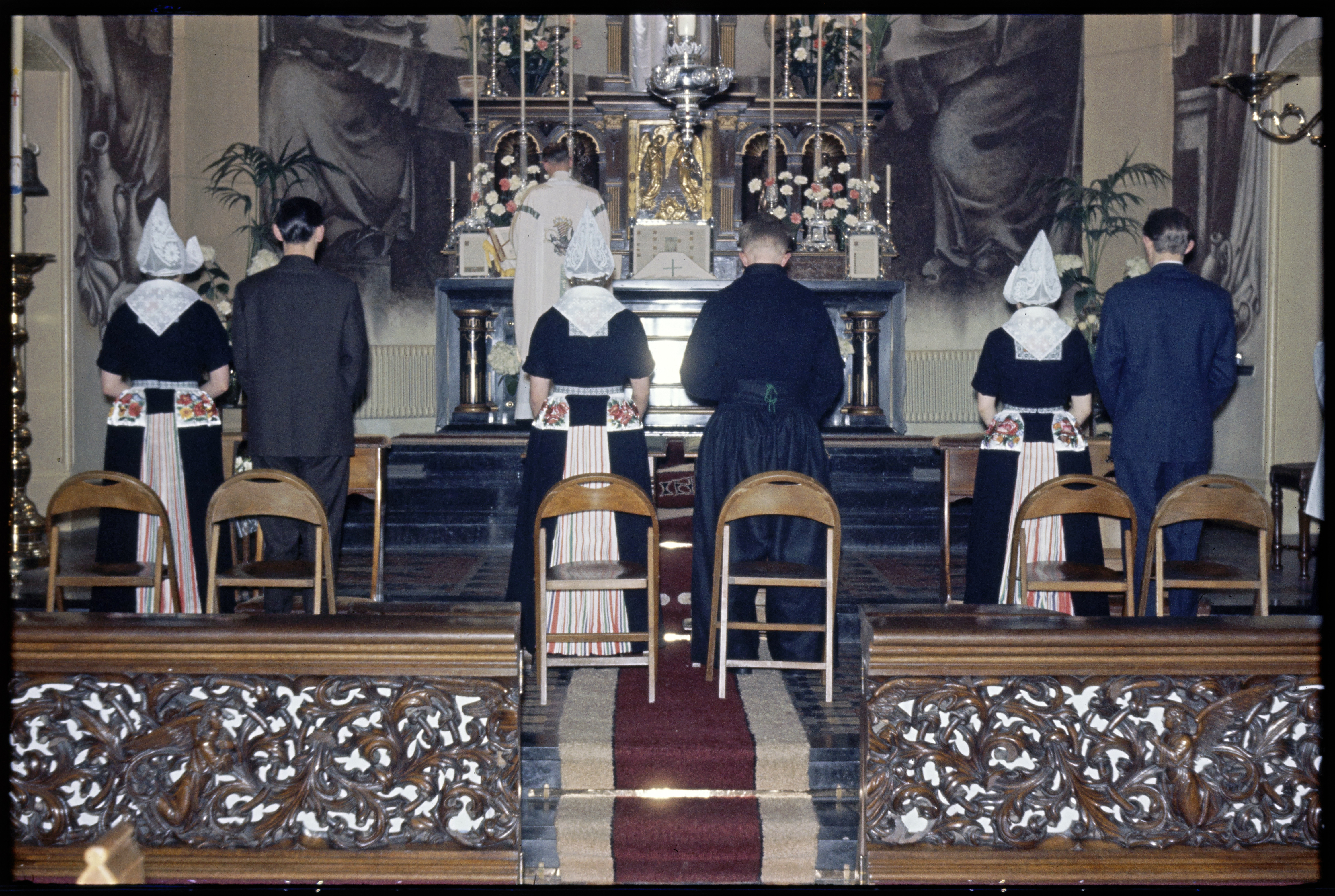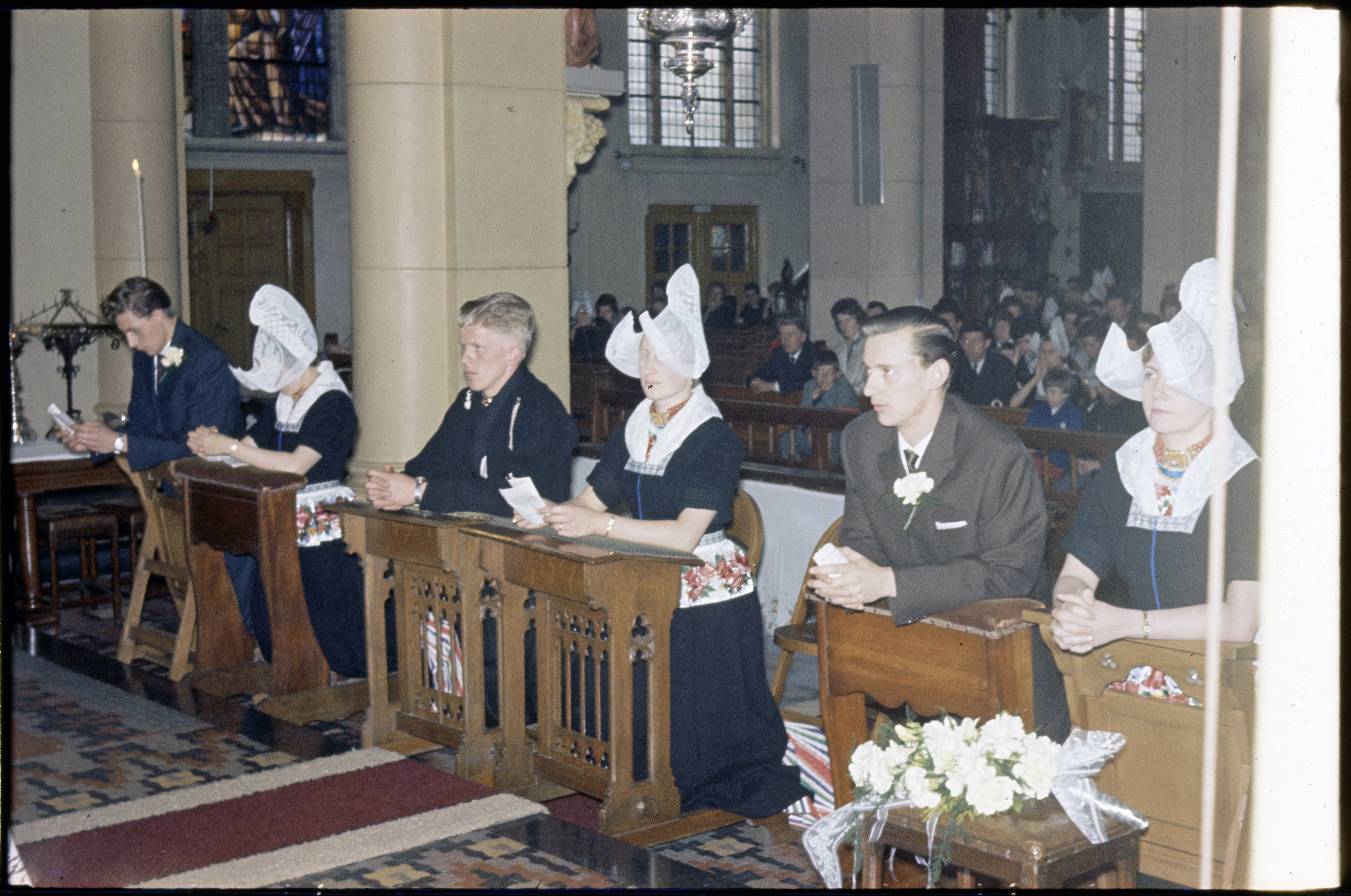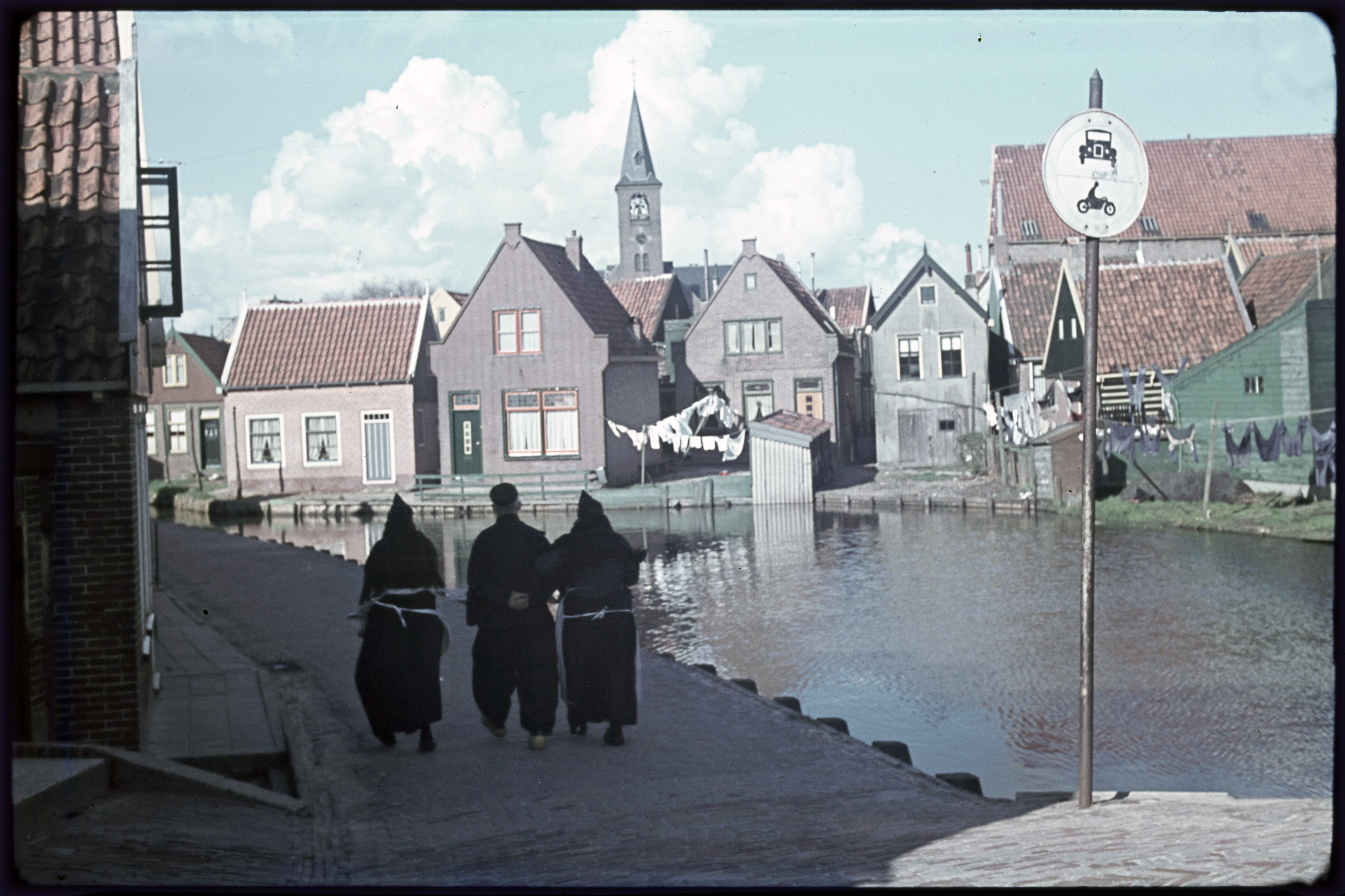 Volendammers in klederdracht ter kerk